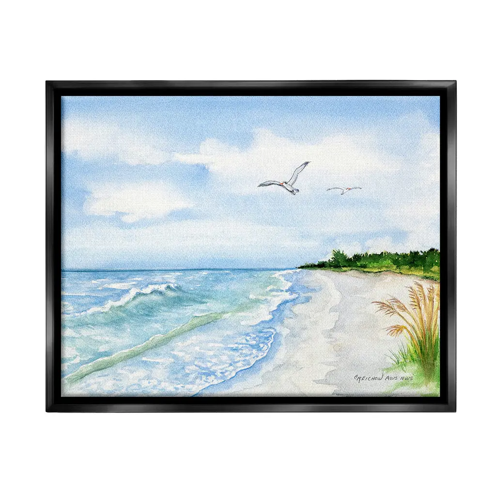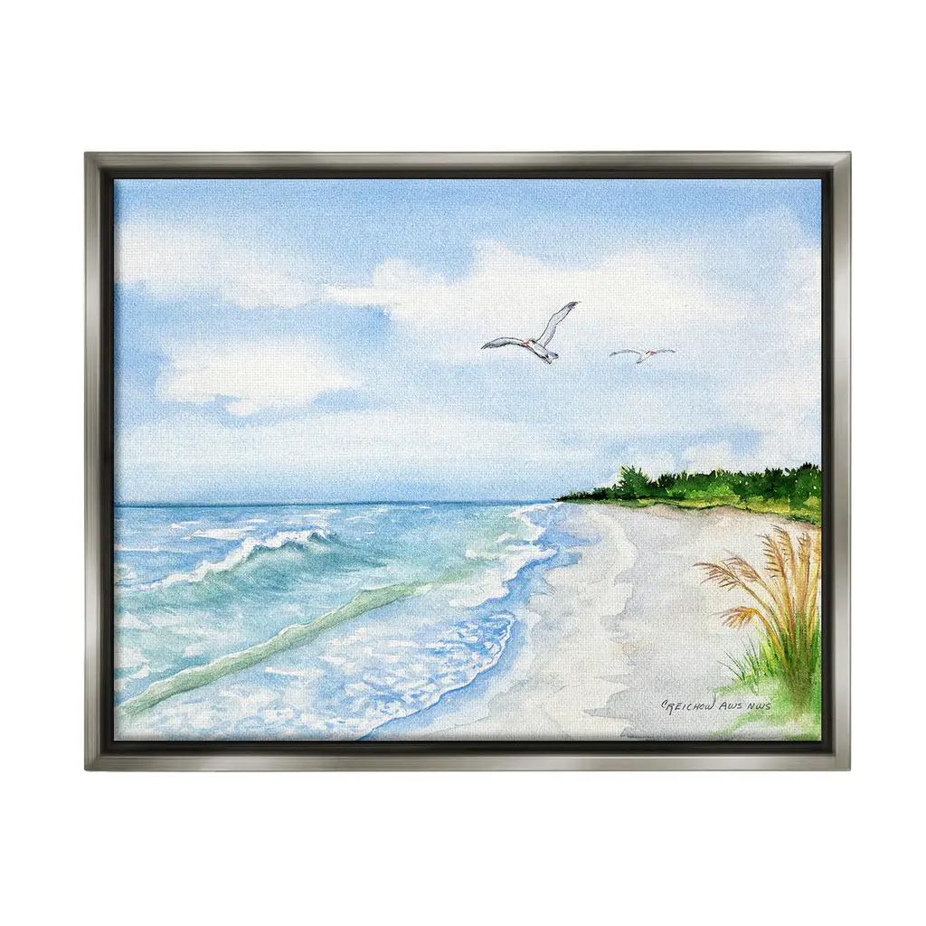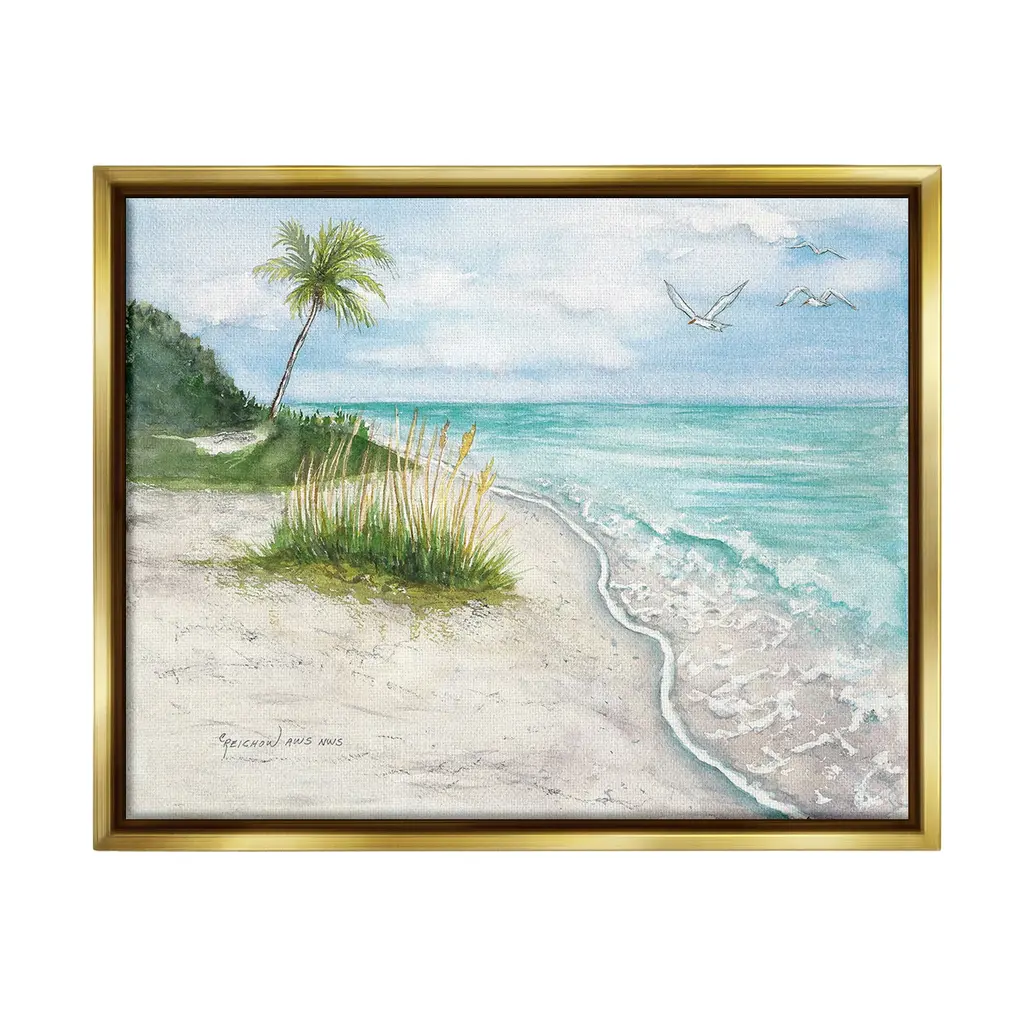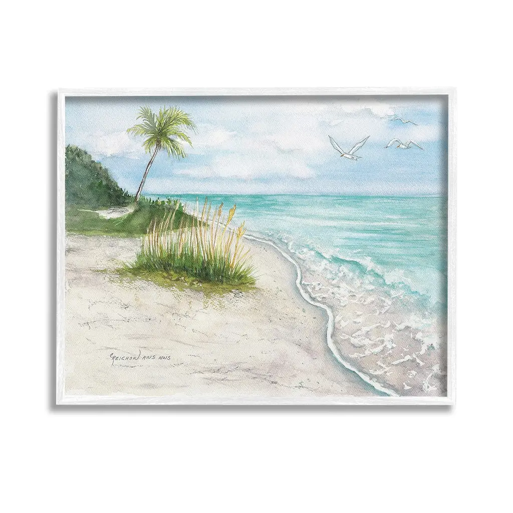 Add dimension to any room with our textured Framed Giclee Artwork. Our framed artwork is securely mounted into a 1.5-inch thick wood grain frame and ready to hang. Frames are available in three alluring styles: black, gray farmhouse and white. In addition, you should check out our oversized options if you want a statement piece. Stupell Wall Art is made in the USA.Features: Dimensions: 14 x 1.5 x 11 FramedFramed Giclee Products are available in the sizes 14"x11", 20"x16" or 30"x24". All Framed Giclee Products have a 1.5" Depth. Wall Art is Ready to Hang with Hardware Free Hanging. No installation required. For Easy Set Up Lean or Layer Artwork on Shelf or Against Wall.Our giclée prints are carefully mounted on a durable MDF backing, and then perfectly finished in a 1.5 inch thick woodgrain frame. Mounted frame colors include black, gray farmhouse and white. Made In USA.Artwork Relates To: Summer, Nature, Scenery, Sea, Water, Shoreline, Path, Beach, Coast, Palm Tree, Tropical, Animal, SeagullDesign by Christine Reichow