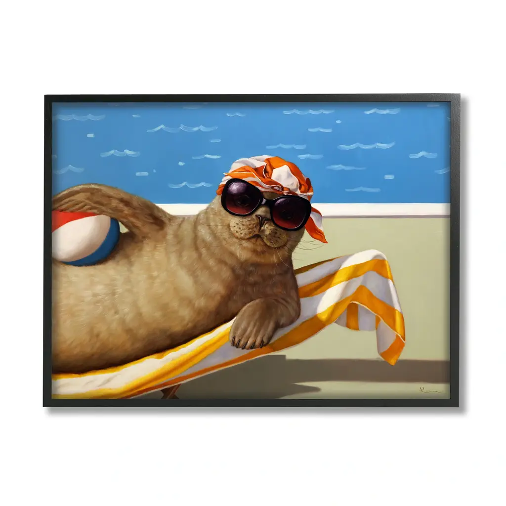 Add dimension to any room with our textured Framed Giclee Artwork. Our framed artwork is securely mounted into a 1.5-inch thick wood grain frame and ready to hang. Frames are available in three alluring styles: black, gray farmhouse and white. In addition, you should check out our oversized options if you want a statement piece. Stupell Wall Art is made in the USA.Features: Dimensions: 14 x 1.5 x 11 FramedFramed Giclee Sizes Include Standard: 14 x 1.5 x 11 Large: 20 x 1.5 x 16 Oversized: 30 x 1.5 x 24Wall Art is Ready to Hang with Hardware Free Hanging. No installation required. For Easy Set Up Lean or Layer Artwork on Shelf or Against Wall.Our giclée prints are carefully mounted on a durable MDF backing, and then perfectly finished in a 1.5 inch thick woodgrain frame. Mounted frame colors include black, gray farmhouse and white. Made In USA.Artwork Relates To: Sunglasses, Animal, Wildlife, Sea Life, Seal, Water, Sea LionDesign by Lucia Heffernan