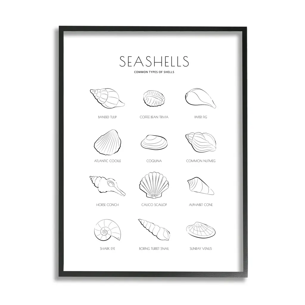 Stupell Seashell Guide For Common Shells Minimal Nautical Chart Framed Wall Art - 11 X 14 - Black