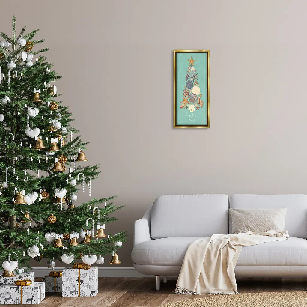 Elevate your home or office to the next level with Stupell Framed Floating Canvas Wall Art. Our premium hand-stretched canvas is mounted securely into a sturdy lightweight frame. The museum-style gap between the wrapped canvas and the box frame gives the illusion of floating artwork. Stupell Wall Art is made in the USA.Features: Dimensions: 11 x 1.7 x 25 Frame, 10 x 1.5 x 24 Canvas ArtFloating Frame Canvas Products are available in sizes 11"x25" and 14"x31". All Floating Frame Canvas Products have a 1.7" Depth.Wall Art is Ready to Hang with Hardware Free Hanging. No Installation required. For Easy Set Up Lean or Layer Artwork on Shelf or Against Wall. Artwork is Permently Fixed into the Frame.Our elevated 1.7" Thick Floating Frame is the perfect complement to our canvas style Wall Art. We use only the highest quality inks in house with industry leading printing solutions. Canvas is hand stretched over a durable wood foundation and then mounted securly into a Modern Box Frame. Made in the USA.Artwork Relates To: Holiday, Christmas, Coastal, Nautical, Seashell, TreeDesign by Stephanie Workman Marrott