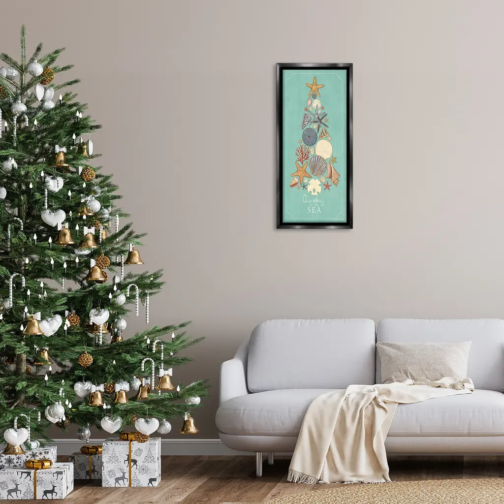 Elevate your home or office to the next level with Stupell Framed Floating Canvas Wall Art. Our premium hand-stretched canvas is mounted securely into a sturdy lightweight frame. The museum-style gap between the wrapped canvas and the box frame gives the illusion of floating artwork. Stupell Wall Art is made in the USA.Features: Dimensions: 11 x 1.7 x 25 Frame, 10 x 1.5 x 24 Canvas ArtFloating Frame Canvas Products are available in sizes 11"x25" and 14"x31". All Floating Frame Canvas Products have a 1.7" Depth.Wall Art is Ready to Hang with Hardware Free Hanging. No Installation required. For Easy Set Up Lean or Layer Artwork on Shelf or Against Wall. Artwork is Permently Fixed into the Frame.Our elevated 1.7" Thick Floating Frame is the perfect complement to our canvas style Wall Art. We use only the highest quality inks in house with industry leading printing solutions. Canvas is hand stretched over a durable wood foundation and then mounted securly into a Modern Box Frame. Made in the USA.Artwork Relates To: Holiday, Christmas, Coastal, Nautical, Seashell, TreeDesign by Stephanie Workman Marrott