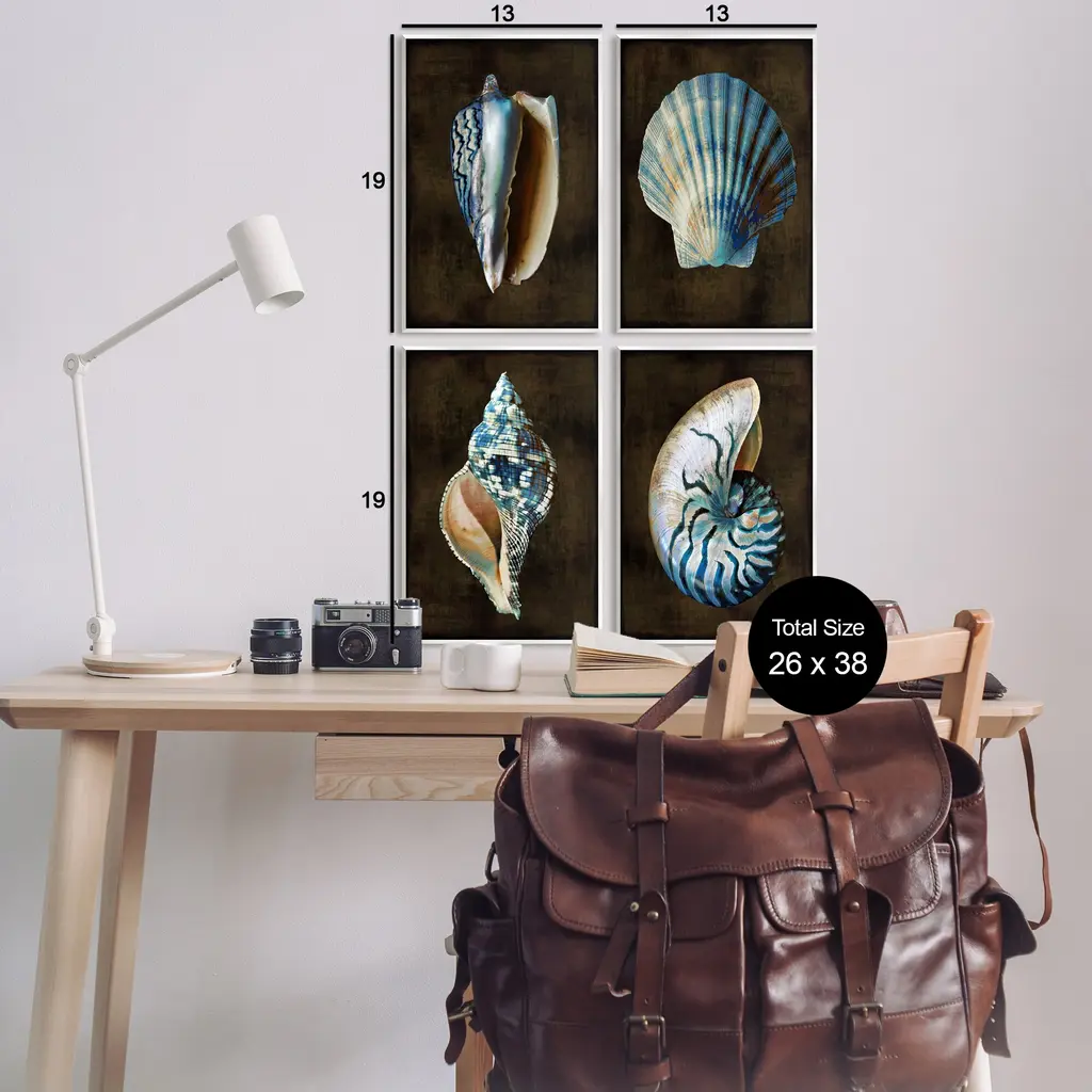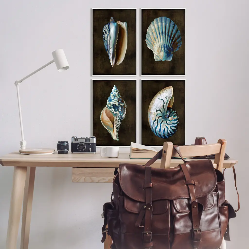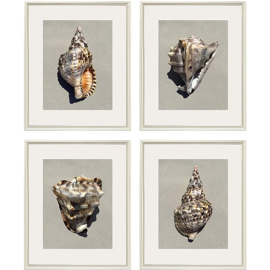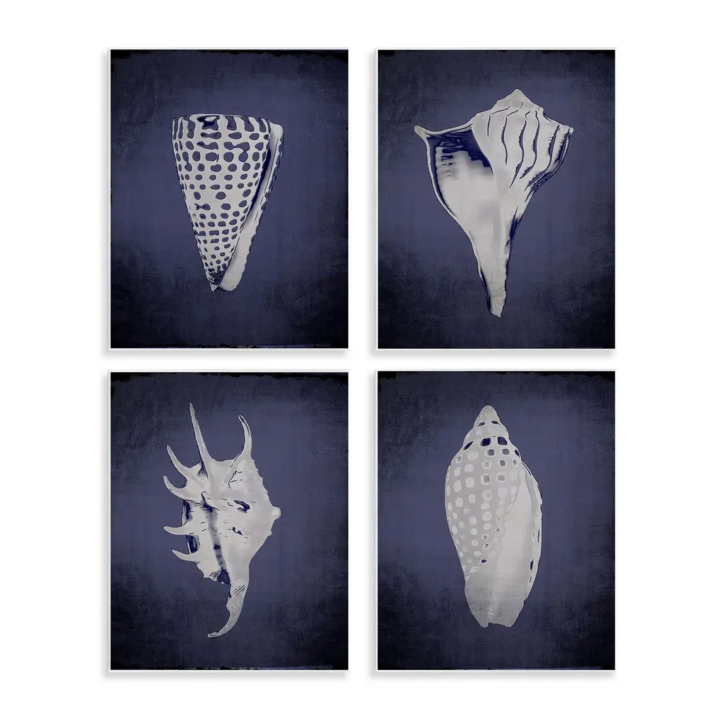 Fill any space with Stupell Wall Art Sets. Our wall plaques start as high-quality lithograph prints mounted on durable 0.5-inch thick MDF wood. Each piece is hand finished and comes with a fresh layer of white foil on the sides to give it a crisp, clean look. Plaques arrive ready to hang without installation and come with removable plastic corners to keep them from damage in transit. Stupell Wall Art is made in the USA.Features: Dimensions: 4 Piece Set, Each Panel is 10 x 0.5 x 15 InchesWall Plaque Set Sizes Include Standard: 4pc, Each is 10 x 0.5 x 15 Oversized: 4pc, Each is 13 x 0.5 x 19Wall Art is Ready to Hang with Hardware Free Hanging. No installation required. For Easy Set Up Lean or Layer Artwork on Shelf or Against Wall.All of our wall plaques start off as high quality lithograph prints that are then mounted on durable 0.5 inch thick MDF wood. Each piece is hand finished and comes with a fresh layer of foil on the sides to give it a crisp clean look. Made In USA.Artwork Relates To: Animal, Invertebrate, Sea Life, Seashell, Fish, Conch, Clam, NauticalDesign by Caroline Kelly