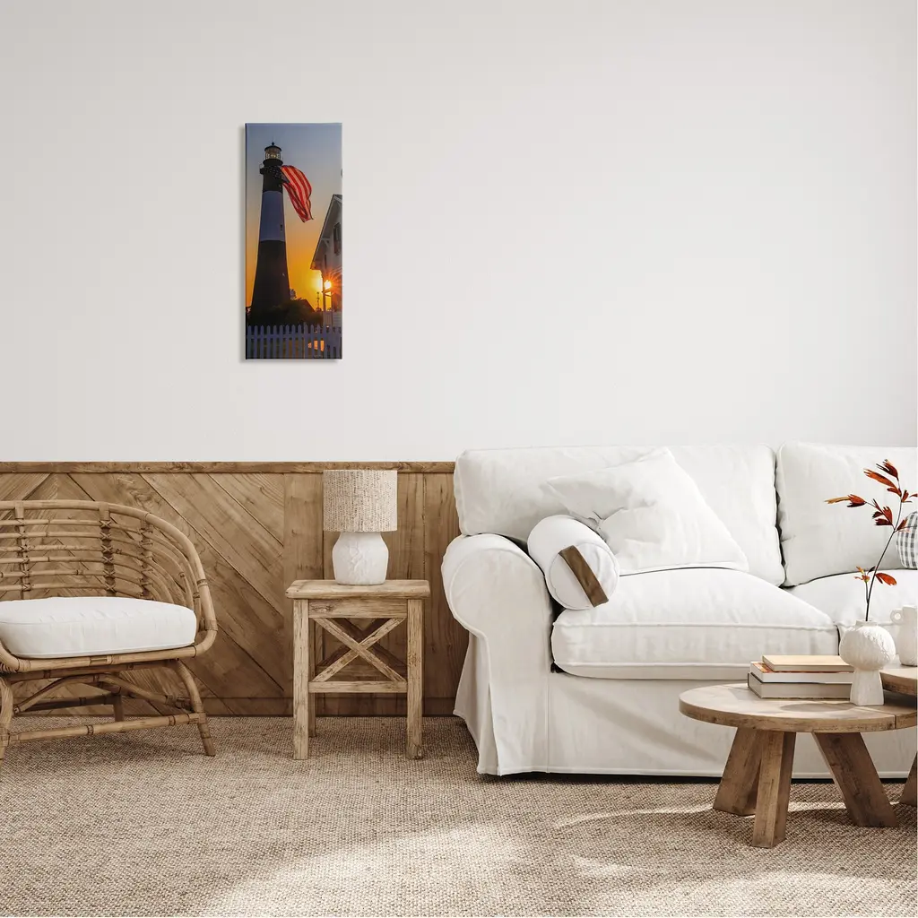Proudly made in the USA, Our stretched canvas is created with the highest standards. We use only the highest quality inks and canvas on our in house Mimaki printers, and then hand cut and stretch each piece over a 1.5 inch thick wooden frame for hanging. The art comes ready to hang with no installation required.Features: Wall Art is Ready to Hang - No Installation or Hardware Needed. For Easy Set Up Lean or Layer Artwork on Shelf or Against Wall.Our stretched canvas is created with the highest standards. We use only the highest quality inks and canvas on our in house Mimaki printers, and then hand cut and stretch each piece over a 1.5 inch thick wooden frame for hanging. Made In USA.Artwork Relates To: Tower; Architecture; Building; Lighthouse; Beacon; Fence; Picket; Design by Devon Davis