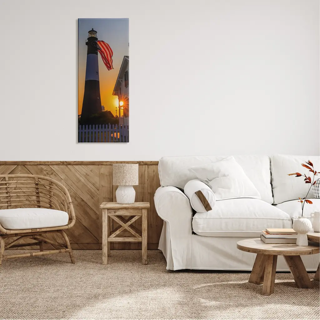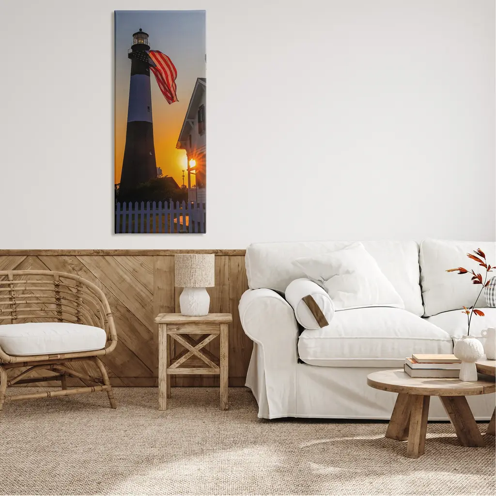 Proudly made in the USA, Our stretched canvas is created with the highest standards. We use only the highest quality inks and canvas on our in house Mimaki printers, and then hand cut and stretch each piece over a 1.5 inch thick wooden frame for hanging. The art comes ready to hang with no installation required.Features: Wall Art is Ready to Hang - No Installation or Hardware Needed. For Easy Set Up Lean or Layer Artwork on Shelf or Against Wall.Our stretched canvas is created with the highest standards. We use only the highest quality inks and canvas on our in house Mimaki printers, and then hand cut and stretch each piece over a 1.5 inch thick wooden frame for hanging. Made In USA.Artwork Relates To: Tower; Architecture; Building; Lighthouse; Beacon; Fence; Picket; Design by Devon Davis