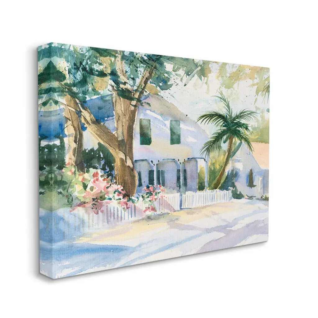 We create our stretched canvas to the highest standards. Using only the highest quality inks and canvas on Mimaki printers, we hand-cut and stretch each piece over a 1.5-inch thick wooden frame for hanging. As a result, the art comes ready to hang on the sturdy ledge with no installation required. Stupell Wall Art is made in the USA.Features: Dimensions: 20 x 1.5 x 16 InchesStretched Canvas Sizes Include Standard: 20 x 1.5 x 16 Large: 30 x 1.5 x 20 X-Large: 40 x 1.5 x 30 Oversized: 48 x 1.5 x 36Wall Art is Ready to Hang - No Installation or Hardware Needed. For Easy Set Up Lean or Layer Artwork on Shelf or Against Wall.Our stretched canvas is created with the highest standards. We use only the highest quality inks and canvas on our in house Mimaki printers, and then hand cut and stretch each piece over a 1.5 inch thick wooden frame for hanging. Made In USA.Artwork Relates To: Building, Cottage, House, Painting, Fence, Neighborhood, Road, Street, Plant, TreeDesign by Stephen Calcasola