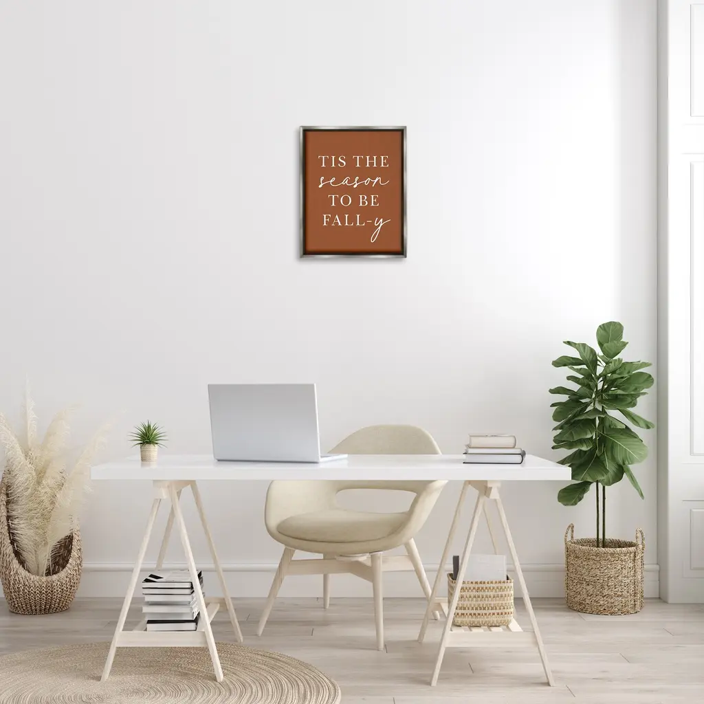 Elevate your home or office to the next level with Stupell Framed Floating Canvas Wall Art. Our premium hand-stretched canvas is mounted securely into a sturdy lightweight frame. The museum-style gap between the wrapped canvas and the box frame gives the illusion of floating artwork. Stupell Wall Art is made in the USA.Features: Dimensions: 17 x 1.7 x 21 Frame, 16 x 1.5 x 20 Canvas ArtFloating Frame Canvas Products are available in sizes 17"x21" and 25"x31". All Floating Frame Canvas Products have a 1.7" Depth.Wall Art is Ready to Hang with Hardware Free Hanging. No Installation required. For Easy Set Up Lean or Layer Artwork on Shelf or Against Wall. Artwork is Permently Fixed into the Frame.Our elevated 1.7" Thick Floating Frame is the perfect complement to our canvas style Wall Art. We use only the highest quality inks in house with industry leading printing solutions. Canvas is hand stretched over a durable wood foundation and then mounted securly into a Modern Box Frame. Made in the USA.Artwork Relates To: Phrase, Fall, Autumn, Humor, Funny, Minimal, Tis The Season To Be Fall-yDesign by Lettered and Lined