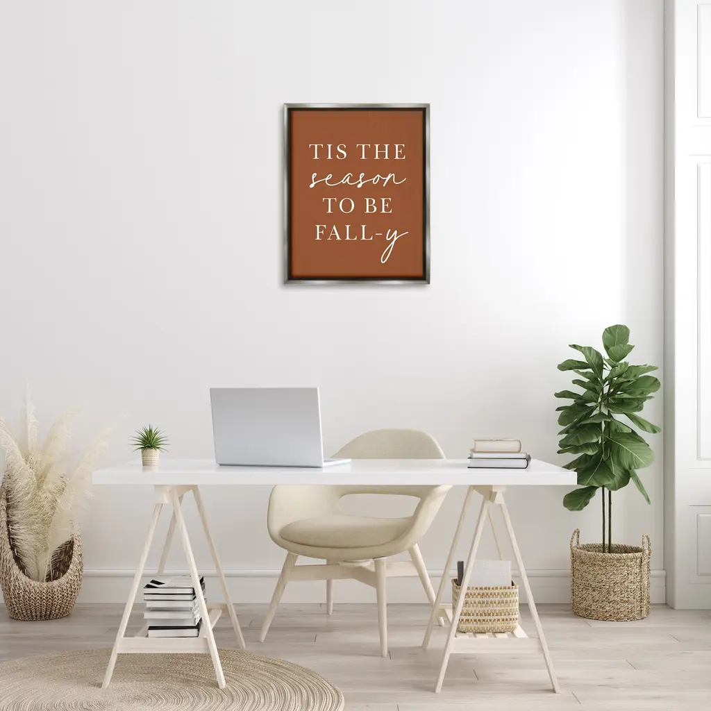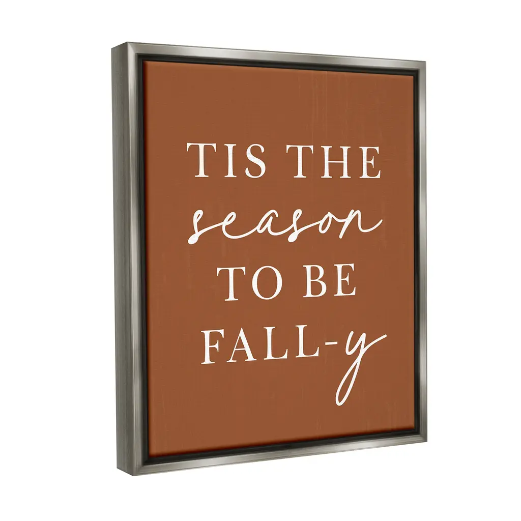 Elevate your home or office to the next level with Stupell Framed Floating Canvas Wall Art. Our premium hand-stretched canvas is mounted securely into a sturdy lightweight frame. The museum-style gap between the wrapped canvas and the box frame gives the illusion of floating artwork. Stupell Wall Art is made in the USA.Features: Dimensions: 17 x 1.7 x 21 Frame, 16 x 1.5 x 20 Canvas ArtFloating Frame Canvas Products are available in sizes 17"x21" and 25"x31". All Floating Frame Canvas Products have a 1.7" Depth.Wall Art is Ready to Hang with Hardware Free Hanging. No Installation required. For Easy Set Up Lean or Layer Artwork on Shelf or Against Wall. Artwork is Permently Fixed into the Frame.Our elevated 1.7" Thick Floating Frame is the perfect complement to our canvas style Wall Art. We use only the highest quality inks in house with industry leading printing solutions. Canvas is hand stretched over a durable wood foundation and then mounted securly into a Modern Box Frame. Made in the USA.Artwork Relates To: Phrase, Fall, Autumn, Humor, Funny, Minimal, Tis The Season To Be Fall-yDesign by Lettered and Lined