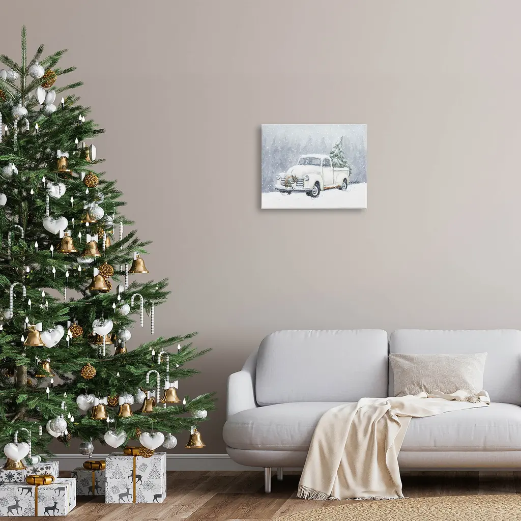 Proudly made in the USA, Our stretched canvas is created with the highest standards. We use only the highest quality inks and canvas on our in house Mimaki printers, and then hand cut and stretch each piece over a 1.5 inch thick wooden frame for hanging. The art comes ready to hang with no installation required.Features: Dimensions: 20 x 1.5 x 16 InchesStretched Canvas Sizes Include Standard: 20 x 1.5 x 16 Large: 30 x 1.5 x 20 X-Large: 40 x 1.5 x 30 Oversized: 48 x 1.5 x 36Wall Art is Ready to Hang - No Installation or Hardware Needed. For Easy Set Up Lean or Layer Artwork on Shelf or Against Wall.Our stretched canvas is created with the highest standards. We use only the highest quality inks and canvas on our in house Mimaki printers, and then hand cut and stretch each piece over a 1.5 inch thick wooden frame for hanging. Made In USA.Artwork Relates To: Pickup Truck, Truck, Vehicle, Transportation, Tree, Snow, Wreath, Seasonal, WinterDesign by Sara Baker