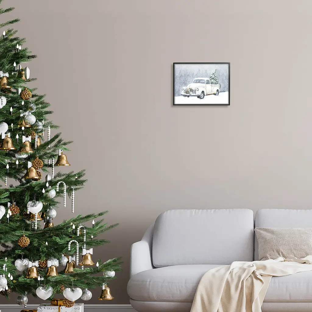 Our Framed Giclee Wall Art adds a touch of class to any space in your home or office. Frames are available in three alluring styles: black, gray farmhouse and white. Our textured artwork will add more depth and dimension to any space. Each piece is mounted with a 1.5 inch thick wood grain frame that is ready to hang! Looking for a statement piece? We have oversized artwork available.Features: Dimensions: 14 x 1.5 x 11 FramedFramed Giclee Sizes Include Standard: 14 x 1.5 x 11 Large: 20 x 1.5 x 16 Oversized: 30 x 1.5 x 24Wall Art is Ready to Hang - No Installation or Hardware Needed. For Easy Set Up Lean or Layer Artwork on Shelf or Against Wall.Our giclée prints are carefully mounted on a durable MDF backing, and then perfectly finished in a 1.5 inch thick woodgrain frame. Mounted frame colors include black, gray farmhouse and white. Made In USA.Artwork Relates To: Pickup Truck, Truck, Vehicle, Transportation, Tree, Snow, Wreath, Seasonal, WinterDesign by Sara Baker