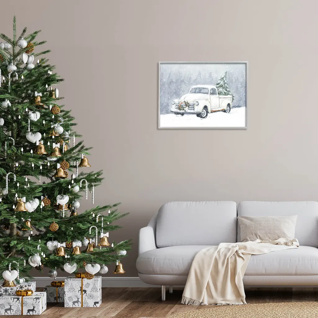 Our Framed Giclee Wall Art adds a touch of class to any space in your home or office. Frames are available in three alluring styles: black, gray farmhouse and white. Our textured artwork will add more depth and dimension to any space. Each piece is mounted with a 1.5 inch thick wood grain frame that is ready to hang! Looking for a statement piece? We have oversized artwork available.Features: Dimensions: 14 x 1.5 x 11 FramedFramed Giclee Sizes Include Standard: 14 x 1.5 x 11 Large: 20 x 1.5 x 16 Oversized: 30 x 1.5 x 24Wall Art is Ready to Hang - No Installation or Hardware Needed. For Easy Set Up Lean or Layer Artwork on Shelf or Against Wall.Our giclée prints are carefully mounted on a durable MDF backing, and then perfectly finished in a 1.5 inch thick woodgrain frame. Mounted frame colors include black, gray farmhouse and white. Made In USA.Artwork Relates To: Pickup Truck, Truck, Vehicle, Transportation, Tree, Snow, Wreath, Seasonal, WinterDesign by Sara Baker