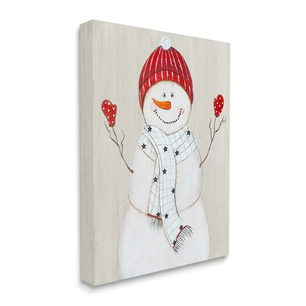 We create our stretched canvas to the highest standards. Using only the highest quality inks and canvas on Mimaki printers, we hand-cut and stretch each piece over a 1.5-inch thick wooden frame for hanging. As a result, the art comes ready to hang on the sturdy ledge with no installation required. Stupell Wall Art is made in the USA.Features: Dimensions: 16 x 1.5 x 20 InchesStretched Canvas Sizes Include Standard: 16 x 1.5 x 20 Large: 20 x 1.5 x 30 X-Large: 30 x 1.5 x 40 Oversized: 36 x 1.5 x 48Wall Art is Ready to Hang - No Installation or Hardware Needed. For Easy Set Up Lean or Layer Artwork on Shelf or Against Wall.Our stretched canvas is created with the highest standards. We use only the highest quality inks and canvas on our in house Mimaki printers, and then hand cut and stretch each piece over a 1.5 inch thick wooden frame for hanging. Made In USA.Artwork Relates To: Winter, Snow, Snowman, Seasonal, HolidayDesign by Janet Tava