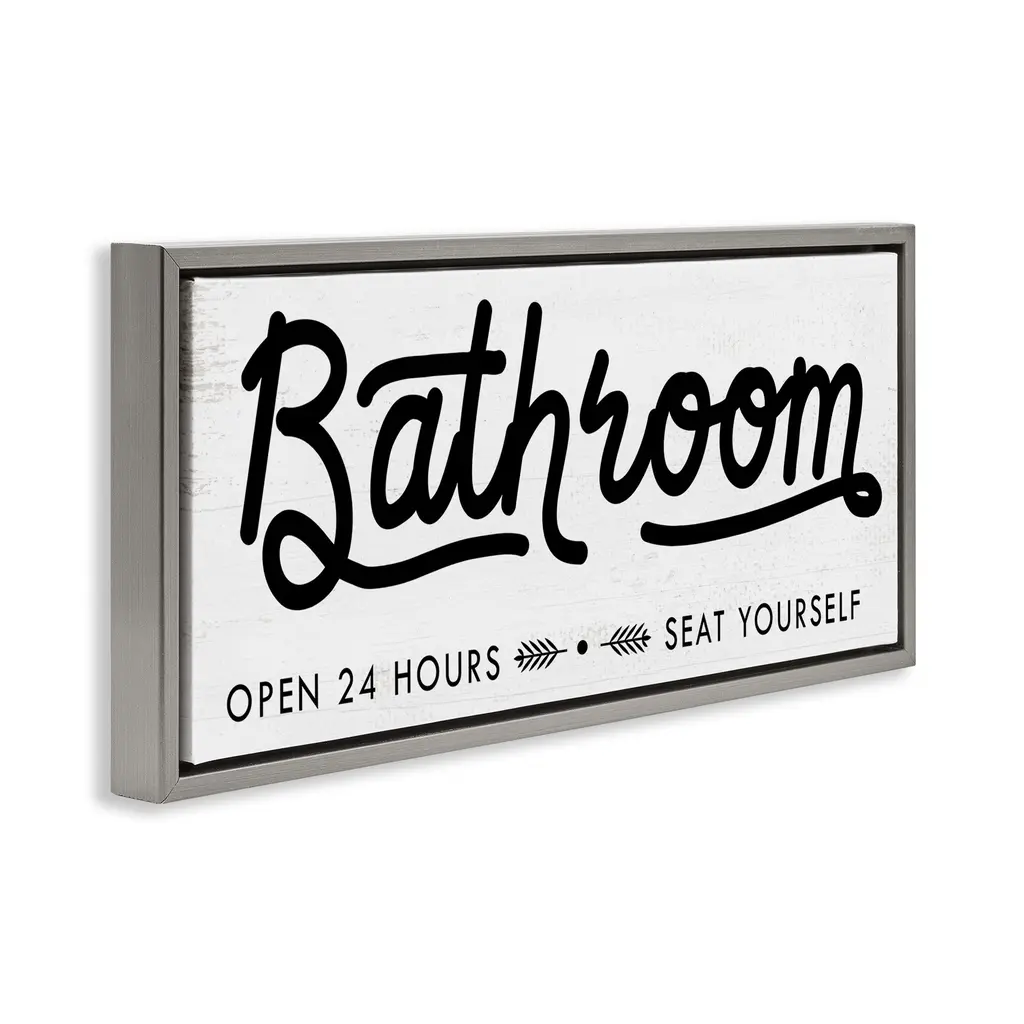Stupell Seat Yourself Bathroom Sign Framed Floater Canvas Wall Art Design By Daphne Polselli - 25 X 11 - Grey