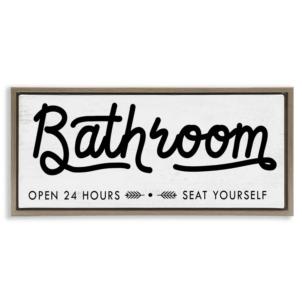 Stupell Seat Yourself Bathroom Sign Framed Giclee Art Design By Daphne Polselli - 24 X 10 - White