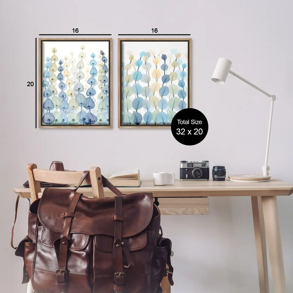 Elevate your home or office to the next level with Stupell Framed Floating Canvas Wall Art. Our premium hand-stretched canvas is mounted securely into a sturdy lightweight frame. The museum-style gap between the wrapped canvas and the box frame gives the illusion of floating artwork. Stupell Wall Art is made in the USA.Features: Dimensions: 2 Piece Set, Each Frame is 17 x 1.7 x 21Two Piece Floater Framed Canvas are available as 17x21 or 25x31 Panels. All Floater Frame Products have a 1.7" Depth.Wall Art is Ready to Hang with Hardware Free Hanging. No Installation required. For Easy Set Up Lean or Layer Artwork on Shelf or Against Wall. Artwork is Permently Fixed into the Frame.Our elevated 1.7" Thick Floating Frame is the perfect complement to our canvas style Wall Art. We use only the highest quality inks in house with industry leading printing solutions. Canvas is hand stretched over a durable wood foundation and then mounted securly into a Modern Box Frame. Made in the USA.Artwork Relates To: Flower, Floral, Plant, Botanical, Modern, Leaf, Herb, EucalyptusDesign by Albert Koetsier