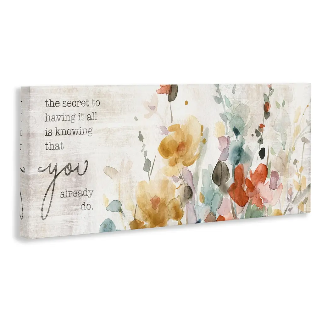 Stupell Secret To Knowing All Motivational Phrase Abstract Flowers Canvas Wall Art - 10 X 24