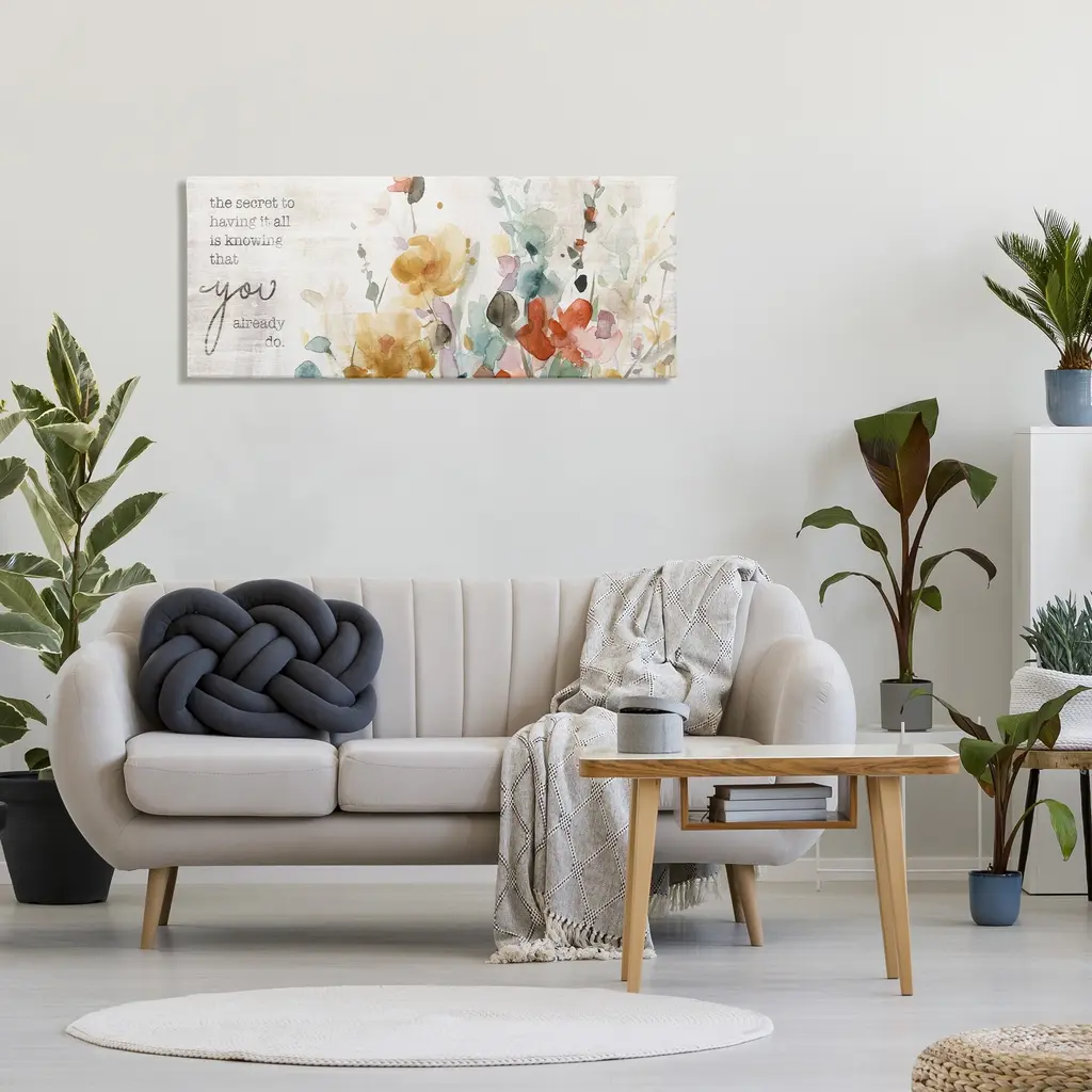 Stupell Secret To Knowing All Motivational Phrase Abstract Flowers Canvas Wall Art - 20 X 48