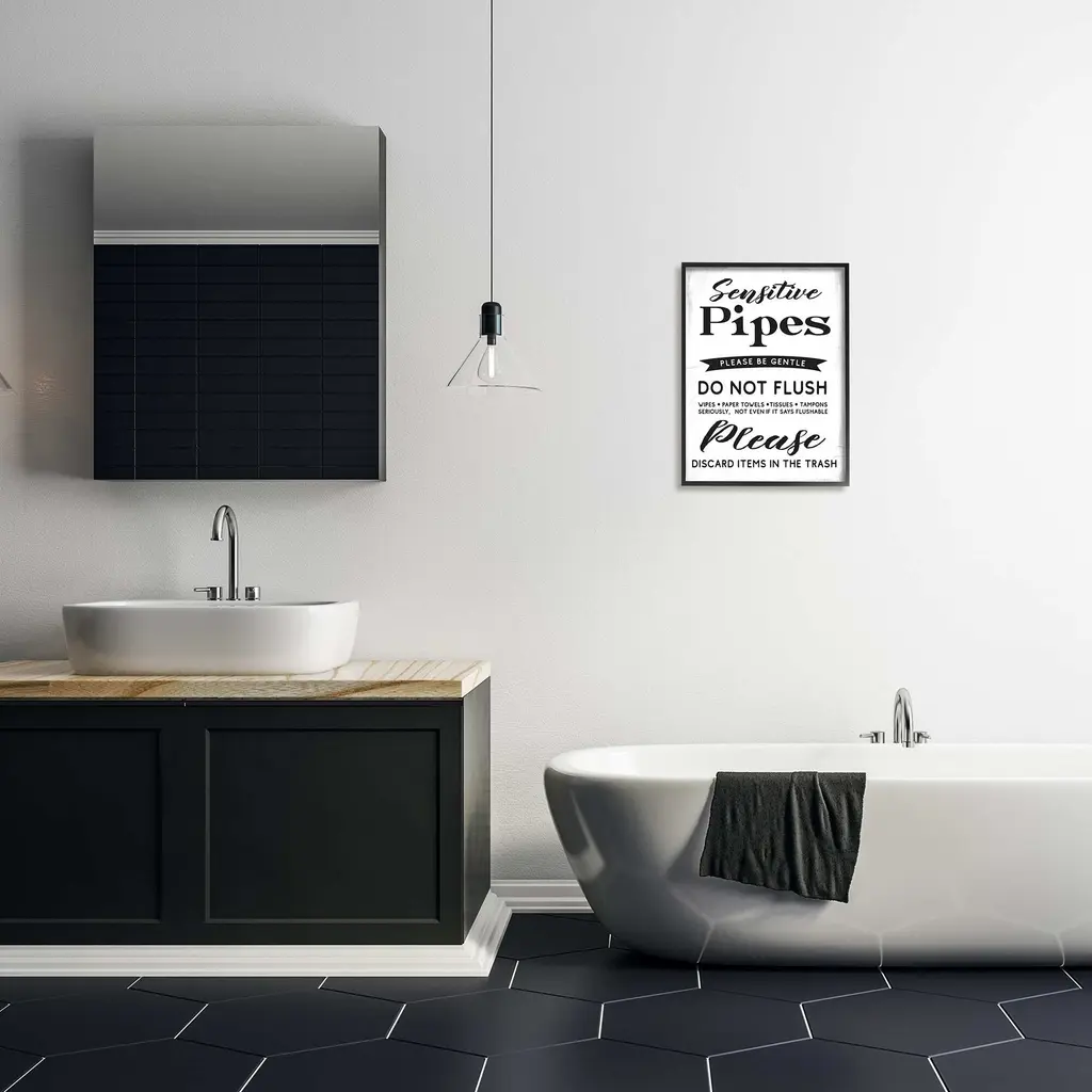 Stupell Sensitive Toilet Pipes Sign Flushing Restrictions Framed Wall Art - White - 16 X 20 - Black