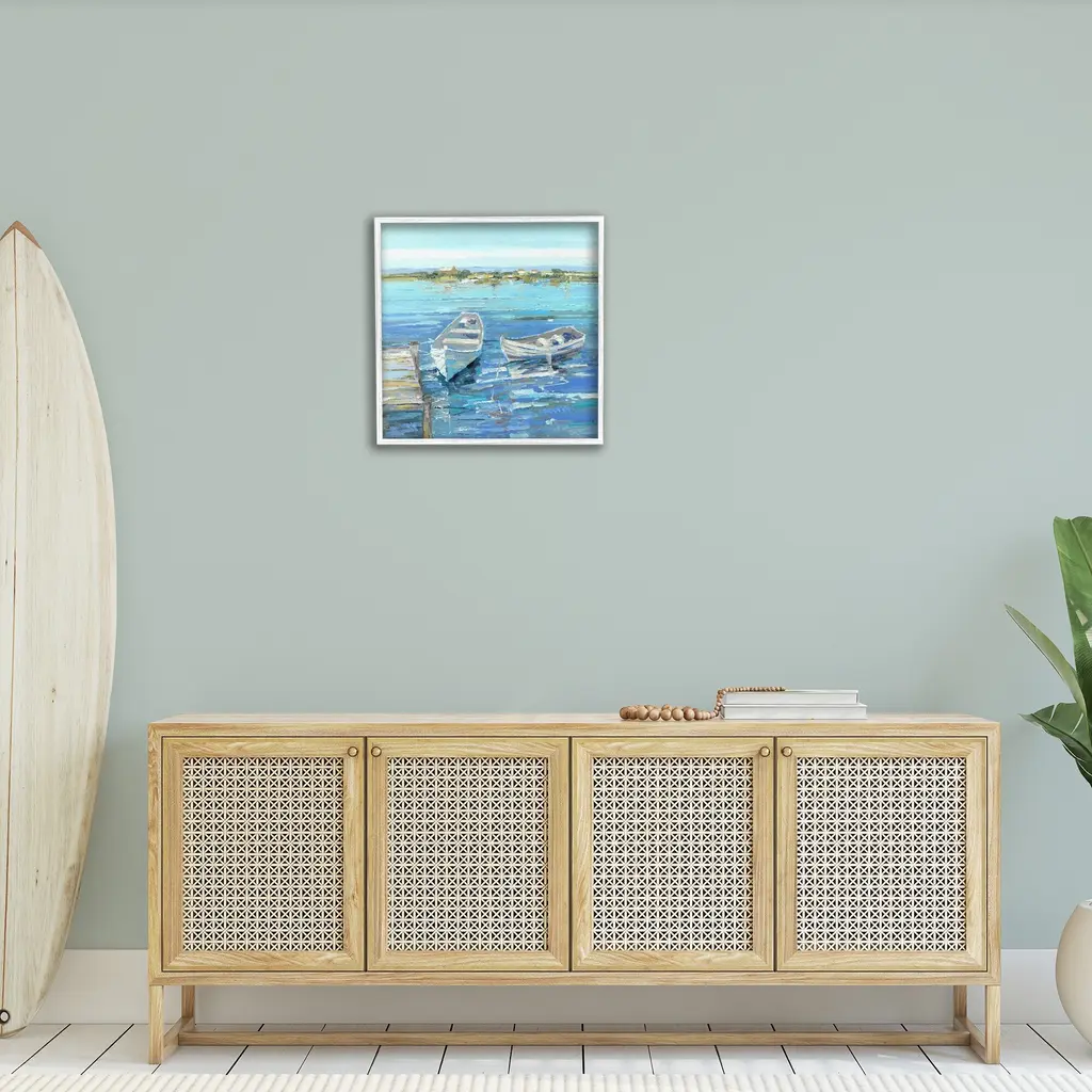 Our Framed Giclee Wall Art adds a touch of class to any space in your home or office. Frames are available in three alluring styles: black, gray farmhouse and white. Our textured artwork will add more depth and dimension to any space. Each piece is mounted with a 1.5 inch thick wood grain frame that is ready to hang! Looking for a statement piece? We have oversized artwork available.Features:Dimensions: 12 x 1.5 x 12 FramedFramed Giclee Sizes IncludeStandard: 12 x 1.5 x 12Large: 17 x 1.5 x 17Oversized: 24 x 1.5 x 24Wall Art is Ready to Hang - No Installation or Hardware Needed. For Easy Set Up Lean or Layer Artwork on Shelf or Against Wall.Our giclee prints are carefully mounted on a durable MDF backing, and then perfectly finished in a 1.5 inch thick woodgrain frame. Mounted frame colors include black, gray farmhouse and white. Made In USA.Artwork Relates To: Waterfront; Water; Dinghy; Watercraft; Boat; Vehicle; Painting; Rowboat; Sea; Outdoors; DockDesign by Sally Swatland