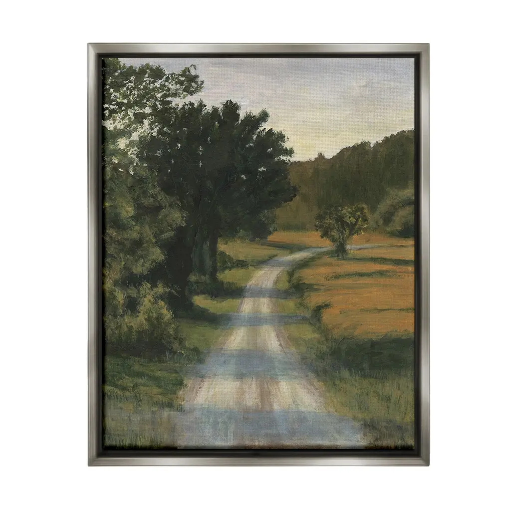 Elevate your home or office to the next level with Stupell Framed Floating Canvas Wall Art. Our premium hand-stretched canvas is mounted securely into a sturdy lightweight frame. The museum-style gap between the wrapped canvas and the box frame gives the illusion of floating artwork. Stupell Wall Art is made in the USA.Features: Dimensions: 17 x 1.7 x 21 Frame, 16 x 1.5 x 20 Canvas ArtFloating Frame Canvas Products are available in sizes 17"x21" and 25"x31". All Floating Frame Canvas Products have a 1.7" Depth.Wall Art is Ready to Hang with Hardware Free Hanging. No Installation required. For Easy Set Up Lean or Layer Artwork on Shelf or Against Wall. Artwork is Permently Fixed into the Frame.Our elevated 1.7" Thick Floating Frame is the perfect complement to our canvas style Wall Art. We use only the highest quality inks in house with industry leading printing solutions. Canvas is hand stretched over a durable wood foundation and then mounted securly into a Modern Box Frame. Made in the USA.Artwork Relates To: Plant, Tree, Path, Road, Oak, Sycamore, Field, Grassland, Nature, LandscapeDesign by Michael Willett