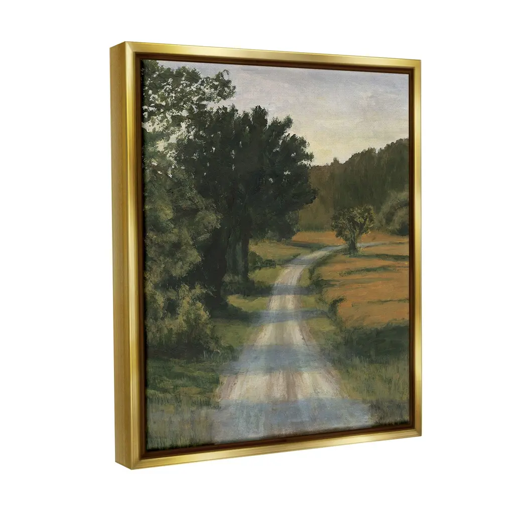 Elevate your home or office to the next level with Stupell Framed Floating Canvas Wall Art. Our premium hand-stretched canvas is mounted securely into a sturdy lightweight frame. The museum-style gap between the wrapped canvas and the box frame gives the illusion of floating artwork. Stupell Wall Art is made in the USA.Features: Dimensions: 17 x 1.7 x 21 Frame, 16 x 1.5 x 20 Canvas ArtFloating Frame Canvas Products are available in sizes 17"x21" and 25"x31". All Floating Frame Canvas Products have a 1.7" Depth.Wall Art is Ready to Hang with Hardware Free Hanging. No Installation required. For Easy Set Up Lean or Layer Artwork on Shelf or Against Wall. Artwork is Permently Fixed into the Frame.Our elevated 1.7" Thick Floating Frame is the perfect complement to our canvas style Wall Art. We use only the highest quality inks in house with industry leading printing solutions. Canvas is hand stretched over a durable wood foundation and then mounted securly into a Modern Box Frame. Made in the USA.Artwork Relates To: Plant, Tree, Path, Road, Oak, Sycamore, Field, Grassland, Nature, LandscapeDesign by Michael Willett
