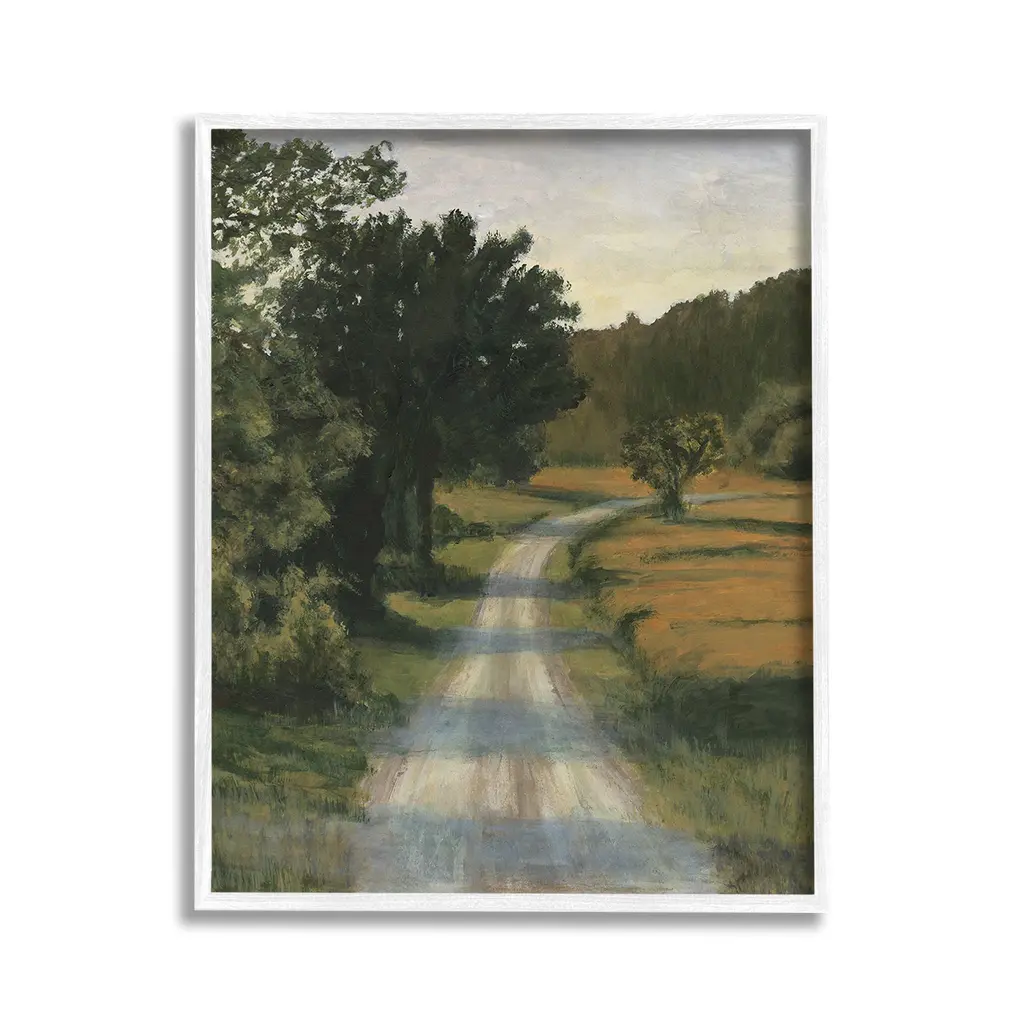 Add dimension to any room with our textured Framed Giclee Artwork. Our framed artwork is securely mounted into a 1.5-inch thick wood grain frame and ready to hang. Frames are available in three alluring styles: black, gray farmhouse and white. In addition, you should check out our oversized options if you want a statement piece. Stupell Wall Art is made in the USA.Features: Dimensions: 11 x 1.5 x 14 FramedFramed Giclee Products are available in the sizes 11"x14", 16"x20" or 24"x30". All Framed Giclee Products have a 1.5" Depth. Wall Art is Ready to Hang with Hardware Free Hanging. No installation required. For Easy Set Up Lean or Layer Artwork on Shelf or Against Wall.Our giclée prints are carefully mounted on a durable MDF backing, and then perfectly finished in a 1.5 inch thick woodgrain frame. Mounted frame colors include black, gray farmhouse and white. Made In USA.Artwork Relates To: Plant, Tree, Path, Road, Oak, Sycamore, Field, Grassland, Nature, LandscapeDesign by Michael Willett