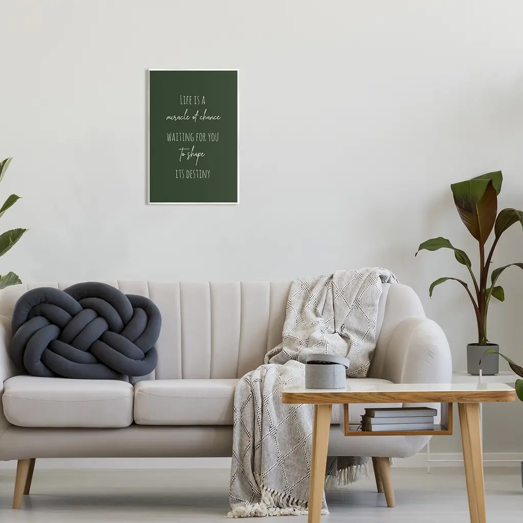 Our wall plaques start as high-quality lithograph prints mounted on durable 0.5-inch thick MDF wood. Each piece is hand finished and comes with a fresh layer of white foil on the sides to give it a crisp, clean look. Plaques arrive ready to hang without installation and come with removable plastic corners to keep them from damage in transit. Wall Art is made in the USA.Features: Dimensions: 10 x 0.5 x 15 InchesWall Plaque Sizes Include Standard: 10 x 0.5 x 15 Oversized: 13 x 0.5 x 19Wall Art is Ready to Hang with Hardware Free Hanging. No installation required. For Easy Set Up Lean or Layer Artwork on Shelf or Against Wall.All of our wall plaques start off as high quality lithograph prints that are then mounted on durable 0.5 inch thick MDF wood. Each piece is hand finished and comes with a fresh layer of foil on the sides to give it a crisp clean look. Made In USA.Artwork Relates To: Uplifting, Motivational, Phrase, Life is a Miracle of Chance Waiting for You to Shape Its DestinyDesign by Birch&Ink