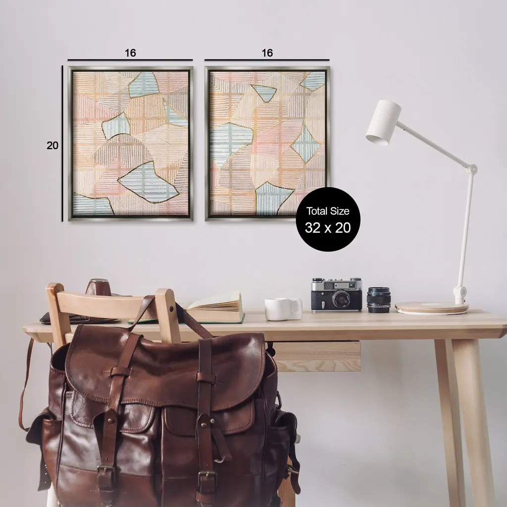Elevate your home or office to the next level with Stupell Framed Floating Canvas Wall Art. Our premium hand-stretched canvas is mounted securely into a sturdy lightweight frame. The museum-style gap between the wrapped canvas and the box frame gives the illusion of floating artwork. Stupell Wall Art is made in the USA.Features: Dimensions: 2 Piece Set, Each Frame is 17 x 1.7 x 21Two Piece Floater Framed Canvas are available as 17x21 or 25x31 Panels. All Floater Frame Products have a 1.7" Depth.Wall Art is Ready to Hang with Hardware Free Hanging. No Installation required. For Easy Set Up Lean or Layer Artwork on Shelf or Against Wall. Artwork is Permently Fixed into the Frame.Our elevated 1.7" Thick Floating Frame is the perfect complement to our canvas style Wall Art. We use only the highest quality inks in house with industry leading printing solutions. Canvas is hand stretched over a durable wood foundation and then mounted securly into a Modern Box Frame. Made in the USA.Artwork Relates To: Abstract, Modern, Pattern, Geometric, StripesDesign by Vanna Lam