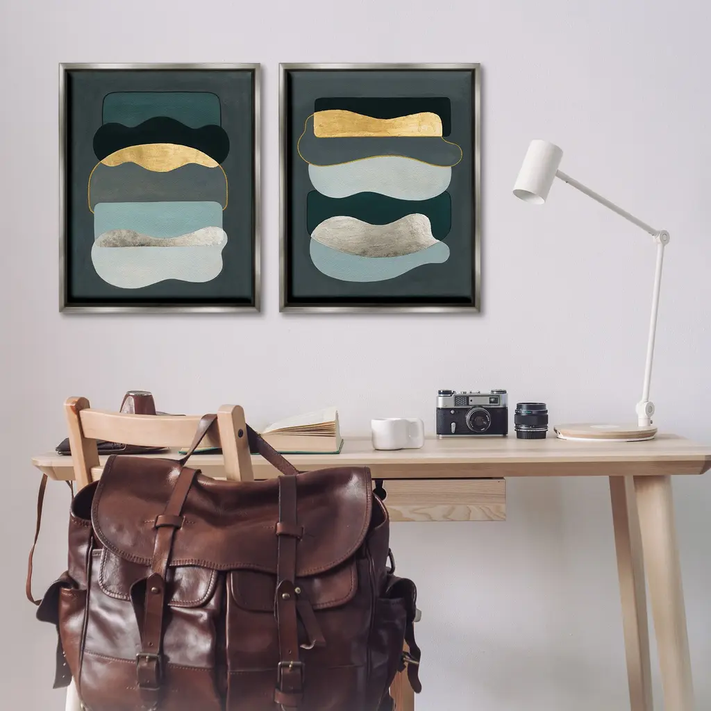 Elevate your home or office to the next level with Stupell Framed Floating Canvas Wall Art. Our premium hand-stretched canvas is mounted securely into a sturdy lightweight frame. The museum-style gap between the wrapped canvas and the box frame gives the illusion of floating artwork. Stupell Wall Art is made in the USA.Features: Dimensions: 2 Piece Set, Each Frame is 17 x 1.7 x 21Two Piece Floater Framed Canvas are available as 17x21 or 25x31 Panels. All Floater Frame Products have a 1.7" Depth.Wall Art is Ready to Hang with Hardware Free Hanging. No Installation required. For Easy Set Up Lean or Layer Artwork on Shelf or Against Wall. Artwork is Permently Fixed into the Frame.Our elevated 1.7" Thick Floating Frame is the perfect complement to our canvas style Wall Art. We use only the highest quality inks in house with industry leading printing solutions. Canvas is hand stretched over a durable wood foundation and then mounted securly into a Modern Box Frame. Made in the USA.Artwork Relates To: Abstract, Modern, Contemporary, Shapes, Pattern, Geometric, Design by Grace Popp