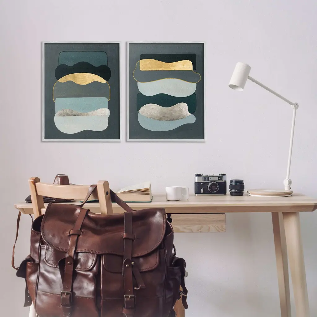 Fill any space in your home or office with our Framed Wall Art Sets. Our framed artwork is securely mounted into a 1.5-inch thick wood grain frame and ready to hang. Frames are available in three alluring styles: black, gray farmhouse and white. Stupell Wall Art is made in the USA.Features: Dimensions: 2 Piece Set, Each Panel is 11 x 1.5 x 14 FramedTwo Piece Framed Giclee Sets are available as 11"x14", 16"x20" or 24"x30" Panels. All Framed Giclee Products have a 1.5" Depth.Wall Art is Ready to Hang with Hardware Free Hanging. No installation required. For Easy Set Up Lean or Layer Artwork on Shelf or Against Wall.Curated Wall Art Sets make it easy for you complete the theme for any room. Our giclée prints are carefully mounted on a durable MDF backing, and then perfectly finished in a 1.5 inch thick woodgrain frame. Mounted frame colors include black, gray farmhouse and white. Made In USA.Artwork Relates To: Abstract, Modern, Contemporary, Shapes, Pattern, Geometric, Design by Grace Popp