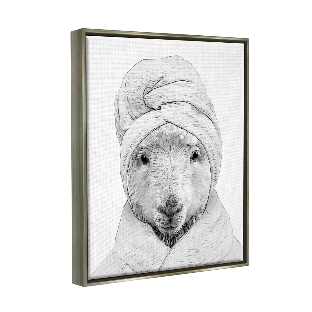 Elevate your home or office to the next level with Stupell Framed Floating Canvas Wall Art. Our premium hand-stretched canvas is mounted securely into a sturdy lightweight frame. The museum-style gap between the wrapped canvas and the box frame gives the illusion of floating artwork. Stupell Wall Art is made in the USA.Features: Dimensions: 17 x 1.7 x 21 Frame, 16 x 1.5 x 20 Canvas ArtFloating Frame Sizes Include Standard: 17 x 1.7 x 21 Oversized: 25 x 1.7 x 31Wall Art is Ready to Hang - No Installation or Hardware Needed. For Easy Set Up Lean or Layer Artwork on Shelf or Against Wall.Our elevated 1.7" Thick Floating Frame is the perfect complement to our canvas style Wall Art. We use only the highest quality inks in house with industry leading printing solutions. Canvas is hand stretched over a durable wood foundation and then mounted securly into a Modern Box Frame. Made in the USA.Artwork Relates To: Animal, Mammal, Wildlife, Bathroom, SheepDesign by Annalisa Latella