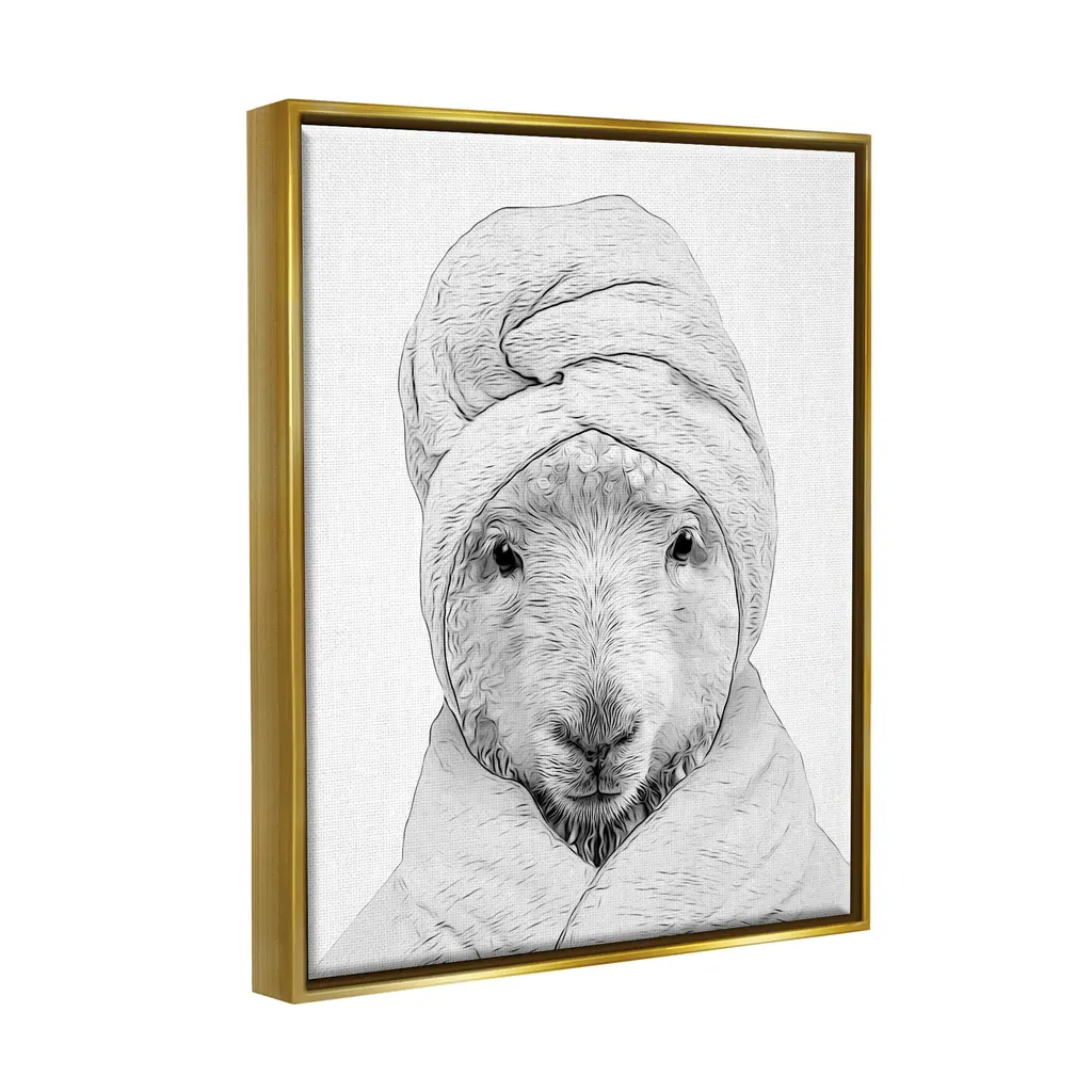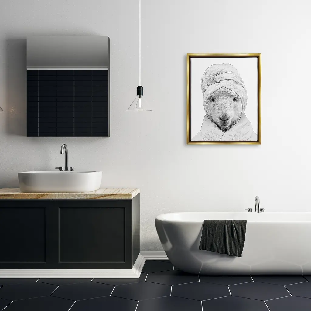 Stupell Sheep Bathroom Robe Funny Animal Framed Floater Canvas Wall Art By Annalisa Latella - 24 X 30 - Gold