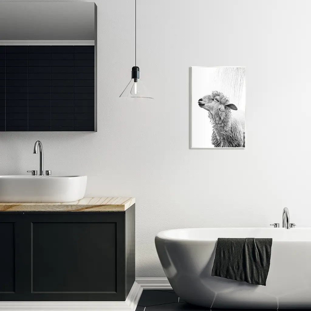 Our wall plaques start as high-quality lithograph prints mounted on durable 0.5-inch thick MDF wood. Each piece is hand finished and comes with a fresh layer of white foil on the sides to give it a crisp, clean look. Plaques arrive ready to hang without installation and come with removable plastic corners to keep them from damage in transit. Stupell Industries Wall Art is made in the USA.Features: Dimensions: 10 x 0.5 x 15 InchesWall Plaque Sizes Include Standard: 10 x 0.5 x 15 Oversized: 13 x 0.5 x 19Wall Art is Ready to Hang with Hardware Free Hanging. No installation required. For Easy Set Up Lean or Layer Artwork on Shelf or Against Wall.All of our wall plaques start off as high quality lithograph prints that are then mounted on durable 0.5 inch thick MDF wood. Each piece is hand finished and comes with a fresh layer of foil on the sides to give it a crisp clean look. Made In USA.Artwork Relates To: Animal, Mammal, Wildlife, Bathroom, SheepDesign by Annalisa Latella