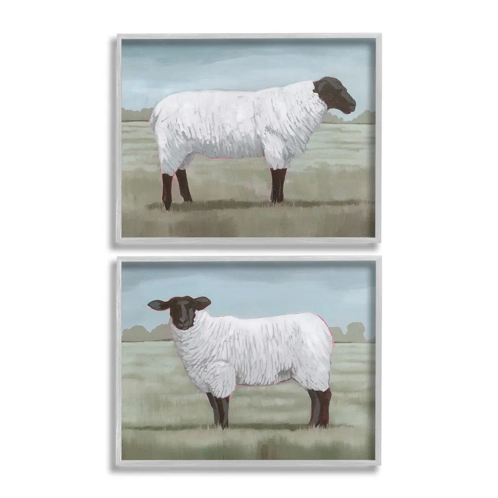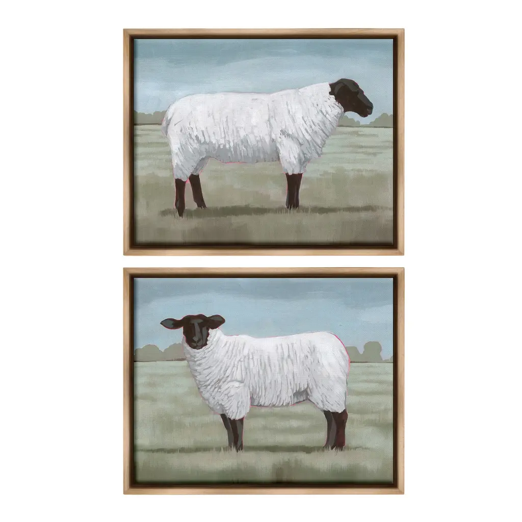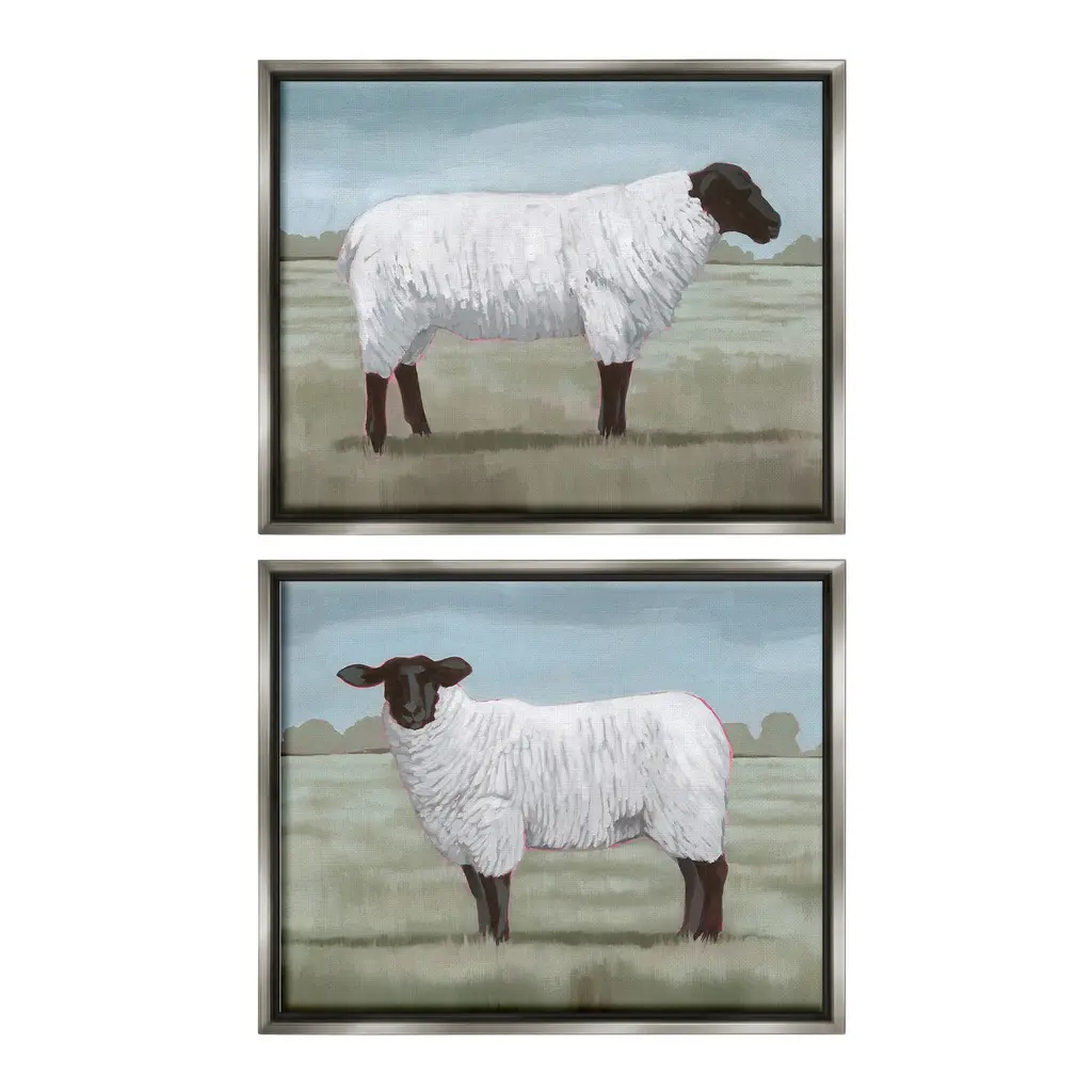 Elevate your home or office to the next level with Stupell Framed Floating Canvas Wall Art. Our premium hand-stretched canvas is mounted securely into a sturdy lightweight frame. The museum-style gap between the wrapped canvas and the box frame gives the illusion of floating artwork. Stupell Wall Art is made in the USA.Features: Dimensions: 2 Piece Set, Each Frame is 17 x 1.7 x 21Two Piece Floater Framed Canvas are available as 21"x17" or 31"x24" Panels. All Floater Frame Products have a 1.7" Depth.Wall Art is Ready to Hang with Hardware Free Hanging. No Installation required. For Easy Set Up Lean or Layer Artwork on Shelf or Against Wall. Artwork is Permently Fixed into the Frame.Our elevated 1.7" Thick Floating Frame is the perfect complement to our canvas style Wall Art. We use only the highest quality inks in house with industry leading printing solutions. Canvas is hand stretched over a durable wood foundation and then mounted securly into a Modern Box Frame. Made in the USA.Artwork Relates To: Animal, Mammal, Sheep, Landscape, Rural, Pasture, Farm, CountryDesign by Grace Popp