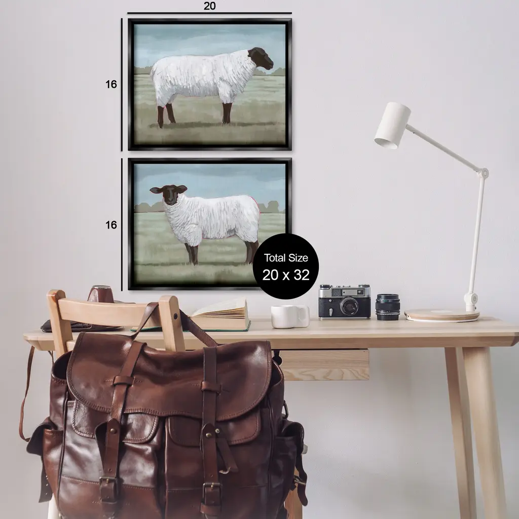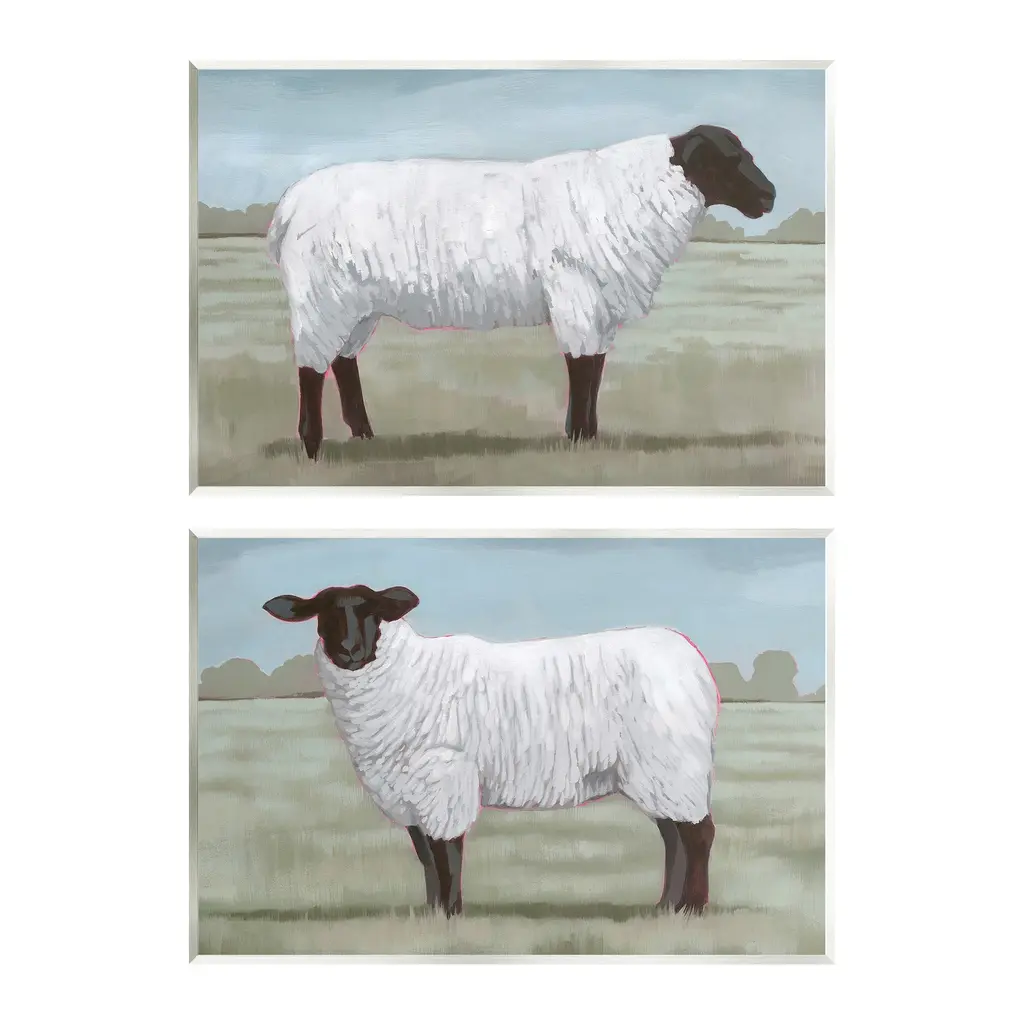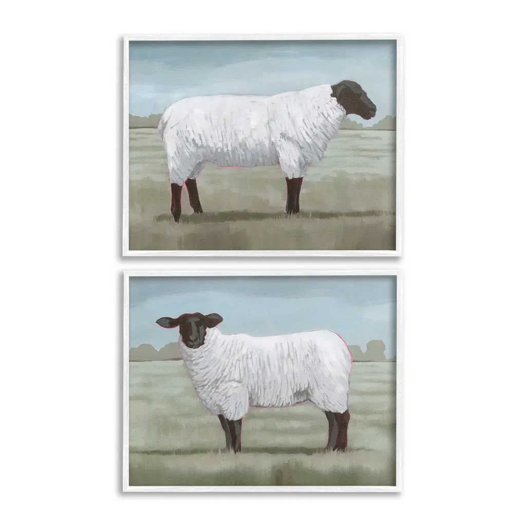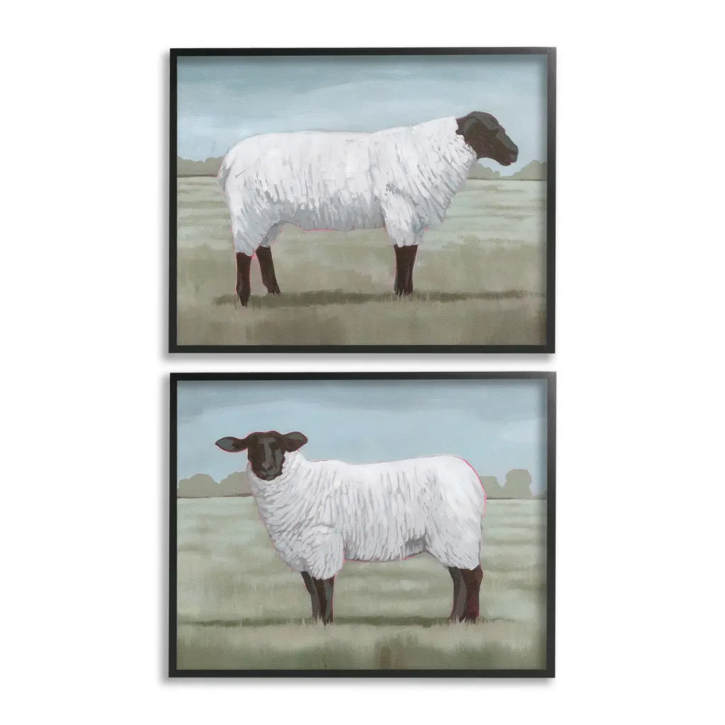 Elevate your home or office to the next level with Stupell Framed Floating Canvas Wall Art. Our premium hand-stretched canvas is mounted securely into a sturdy lightweight frame. The museum-style gap between the wrapped canvas and the box frame gives the illusion of floating artwork. Stupell Wall Art is made in the USA.Features: Dimensions: 2 Piece Set, Each Frame is 17 x 1.7 x 21Two Piece Floater Framed Canvas are available as 21"x17" or 31"x24" Panels. All Floater Frame Products have a 1.7" Depth.Wall Art is Ready to Hang with Hardware Free Hanging. No Installation required. For Easy Set Up Lean or Layer Artwork on Shelf or Against Wall. Artwork is Permently Fixed into the Frame.Our elevated 1.7" Thick Floating Frame is the perfect complement to our canvas style Wall Art. We use only the highest quality inks in house with industry leading printing solutions. Canvas is hand stretched over a durable wood foundation and then mounted securly into a Modern Box Frame. Made in the USA.Artwork Relates To: Animal, Mammal, Sheep, Landscape, Rural, Pasture, Farm, CountryDesign by Grace Popp