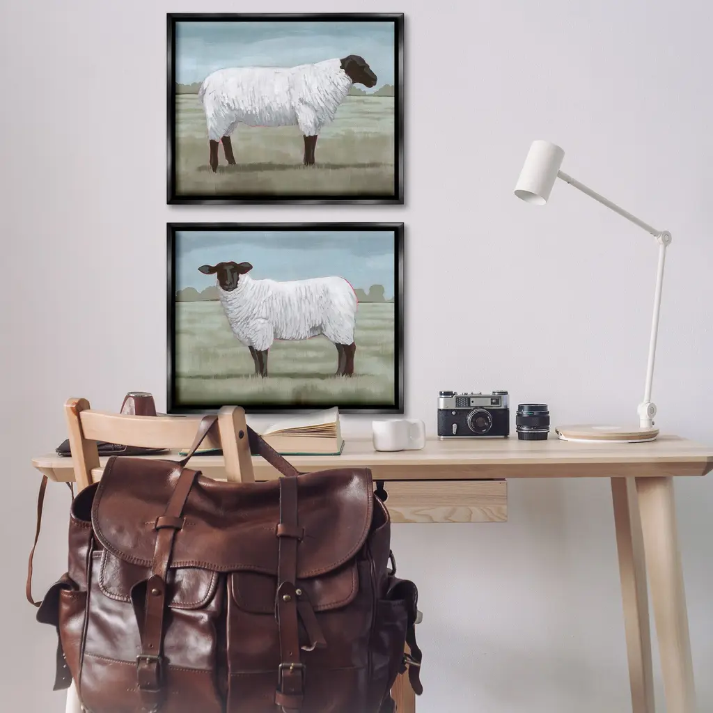 Elevate your home or office to the next level with Stupell Framed Floating Canvas Wall Art. Our premium hand-stretched canvas is mounted securely into a sturdy lightweight frame. The museum-style gap between the wrapped canvas and the box frame gives the illusion of floating artwork. Stupell Wall Art is made in the USA.Features: Dimensions: 2 Piece Set, Each Frame is 17 x 1.7 x 21Two Piece Floater Framed Canvas are available as 21"x17" or 31"x24" Panels. All Floater Frame Products have a 1.7" Depth.Wall Art is Ready to Hang with Hardware Free Hanging. No Installation required. For Easy Set Up Lean or Layer Artwork on Shelf or Against Wall. Artwork is Permently Fixed into the Frame.Our elevated 1.7" Thick Floating Frame is the perfect complement to our canvas style Wall Art. We use only the highest quality inks in house with industry leading printing solutions. Canvas is hand stretched over a durable wood foundation and then mounted securly into a Modern Box Frame. Made in the USA.Artwork Relates To: Animal, Mammal, Sheep, Landscape, Rural, Pasture, Farm, CountryDesign by Grace Popp