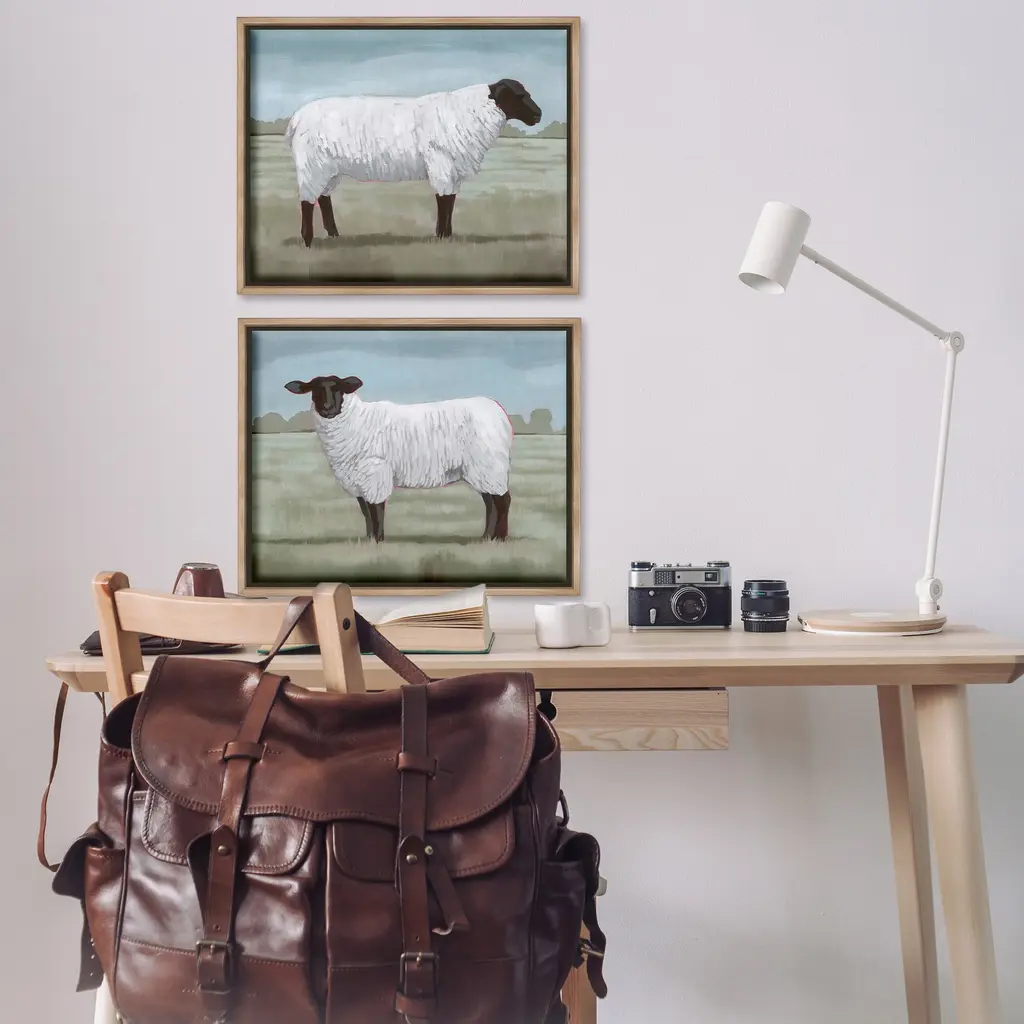 Elevate your home or office to the next level with Stupell Framed Floating Canvas Wall Art. Our premium hand-stretched canvas is mounted securely into a sturdy lightweight frame. The museum-style gap between the wrapped canvas and the box frame gives the illusion of floating artwork. Stupell Wall Art is made in the USA.Features: Dimensions: 2 Piece Set, Each Frame is 17 x 1.7 x 21Two Piece Floater Framed Canvas are available as 21"x17" or 31"x24" Panels. All Floater Frame Products have a 1.7" Depth.Wall Art is Ready to Hang with Hardware Free Hanging. No Installation required. For Easy Set Up Lean or Layer Artwork on Shelf or Against Wall. Artwork is Permently Fixed into the Frame.Our elevated 1.7" Thick Floating Frame is the perfect complement to our canvas style Wall Art. We use only the highest quality inks in house with industry leading printing solutions. Canvas is hand stretched over a durable wood foundation and then mounted securly into a Modern Box Frame. Made in the USA.Artwork Relates To: Animal, Mammal, Sheep, Landscape, Rural, Pasture, Farm, CountryDesign by Grace Popp