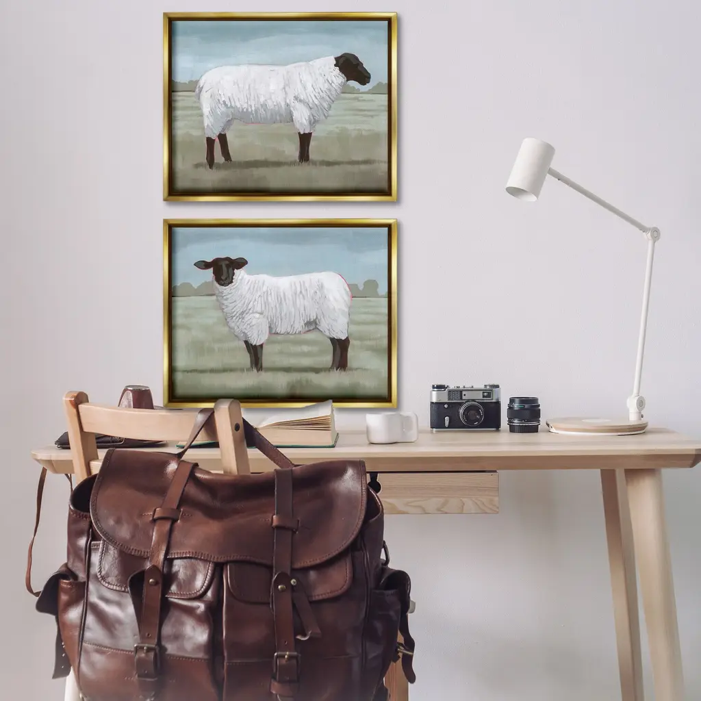 Elevate your home or office to the next level with Stupell Framed Floating Canvas Wall Art. Our premium hand-stretched canvas is mounted securely into a sturdy lightweight frame. The museum-style gap between the wrapped canvas and the box frame gives the illusion of floating artwork. Stupell Wall Art is made in the USA.Features: Dimensions: 2 Piece Set, Each Frame is 17 x 1.7 x 21Two Piece Floater Framed Canvas are available as 21"x17" or 31"x24" Panels. All Floater Frame Products have a 1.7" Depth.Wall Art is Ready to Hang with Hardware Free Hanging. No Installation required. For Easy Set Up Lean or Layer Artwork on Shelf or Against Wall. Artwork is Permently Fixed into the Frame.Our elevated 1.7" Thick Floating Frame is the perfect complement to our canvas style Wall Art. We use only the highest quality inks in house with industry leading printing solutions. Canvas is hand stretched over a durable wood foundation and then mounted securly into a Modern Box Frame. Made in the USA.Artwork Relates To: Animal, Mammal, Sheep, Landscape, Rural, Pasture, Farm, CountryDesign by Grace Popp