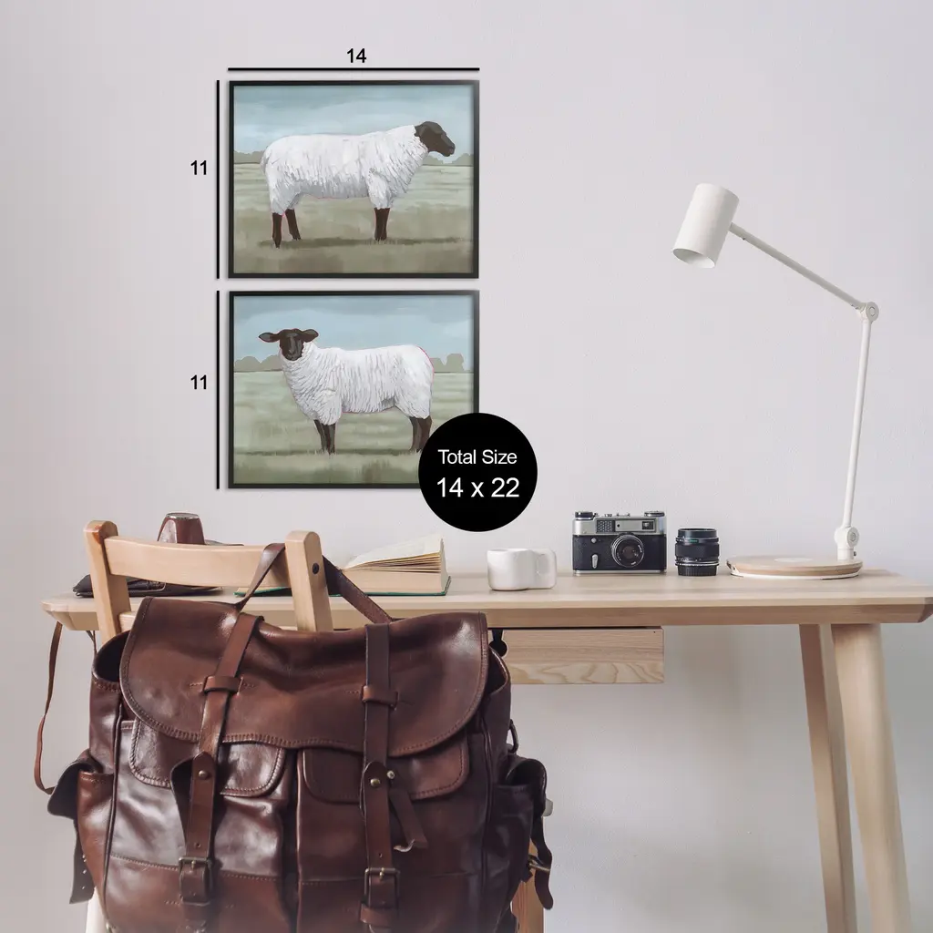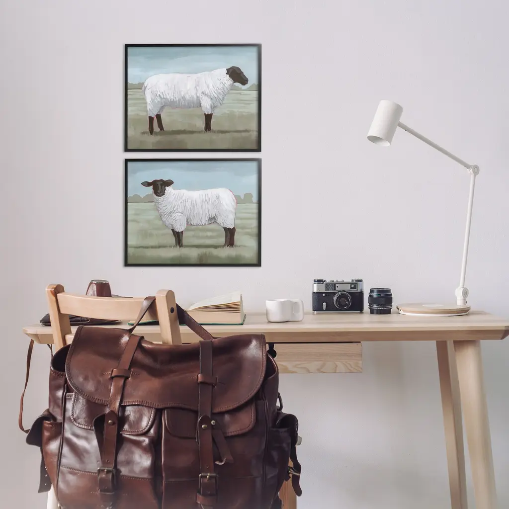 Fill any space in your home or office with our Framed Wall Art Sets. Our framed artwork is securely mounted into a 1.5-inch thick wood grain frame and ready to hang. Frames are available in three alluring styles: black, gray farmhouse and white. Stupell Wall Art is made in the USA.Features: Dimensions: 2 Piece Set, Each Panel is 14 x 1.5 x 11 FramedTwo Piece Framed Giclee Sets are available as 14"x11", 20"x16" or 30"x24" Panels. All Framed Giclee Products have a 1.5" Depth.Wall Art is Ready to Hang with Hardware Free Hanging. No installation required. For Easy Set Up Lean or Layer Artwork on Shelf or Against Wall.Curated Wall Art Sets make it easy for you complete the theme for any room. Our giclée prints are carefully mounted on a durable MDF backing, and then perfectly finished in a 1.5 inch thick woodgrain frame. Mounted frame colors include black, gray farmhouse and white. Made In USA.Artwork Relates To: Animal, Mammal, Sheep, Landscape, Rural, Pasture, Farm, CountryDesign by Grace Popp