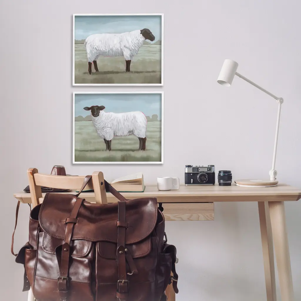 Fill any space in your home or office with our Framed Wall Art Sets. Our framed artwork is securely mounted into a 1.5-inch thick wood grain frame and ready to hang. Frames are available in three alluring styles: black, gray farmhouse and white. Stupell Wall Art is made in the USA.Features: Dimensions: 2 Piece Set, Each Panel is 14 x 1.5 x 11 FramedTwo Piece Framed Giclee Sets are available as 14"x11", 20"x16" or 30"x24" Panels. All Framed Giclee Products have a 1.5" Depth.Wall Art is Ready to Hang with Hardware Free Hanging. No installation required. For Easy Set Up Lean or Layer Artwork on Shelf or Against Wall.Curated Wall Art Sets make it easy for you complete the theme for any room. Our giclée prints are carefully mounted on a durable MDF backing, and then perfectly finished in a 1.5 inch thick woodgrain frame. Mounted frame colors include black, gray farmhouse and white. Made In USA.Artwork Relates To: Animal, Mammal, Sheep, Landscape, Rural, Pasture, Farm, CountryDesign by Grace Popp