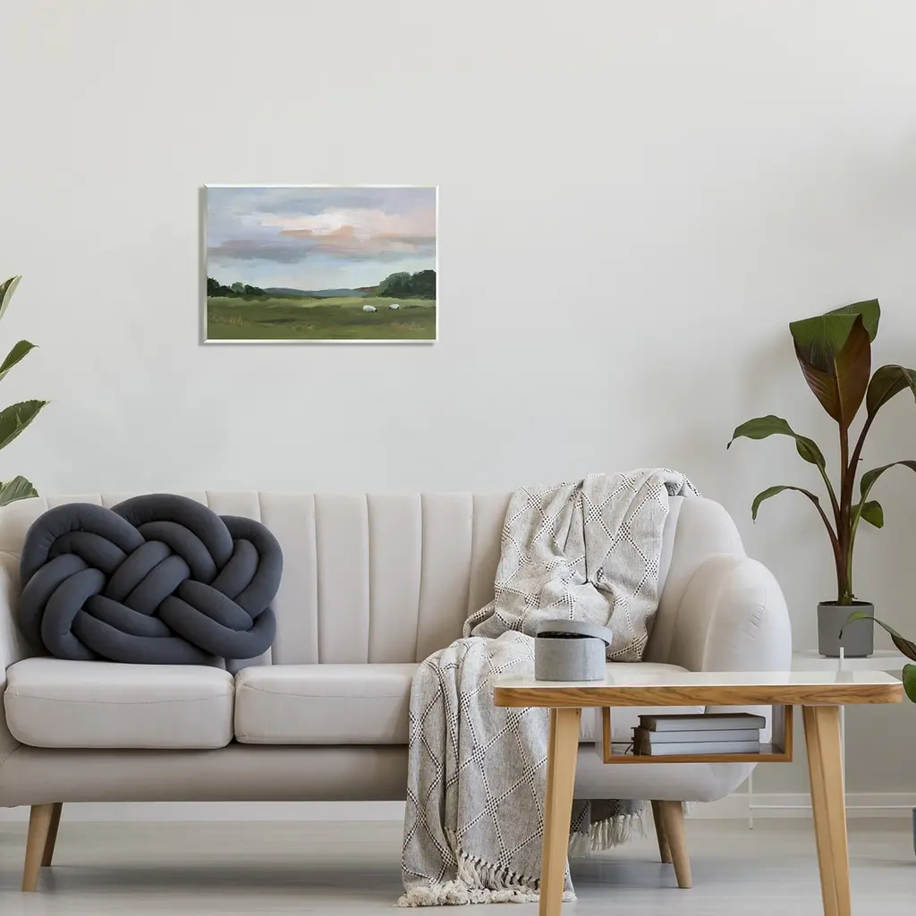Our wall plaques start as high-quality lithograph prints mounted on durable 0.5-inch thick MDF wood. Each piece is hand finished and comes with a fresh layer of white foil on the sides to give it a crisp, clean look. Plaques arrive ready to hang without installation and come with removable plastic corners to keep them from damage in transit. Stupell Industries Wall Art is made in the USA.Features: Dimensions: 15 x 0.5 x 10 InchesWall Plaque Sizes Include Standard: 15 x 0.5 x 10 Oversized: 19 x 0.5 x 13Wall Art is Ready to Hang with Hardware Free Hanging. No installation required. For Easy Set Up Lean or Layer Artwork on Shelf or Against Wall.All of our wall plaques start off as high quality lithograph prints that are then mounted on durable 0.5 inch thick MDF wood. Each piece is hand finished and comes with a fresh layer of foil on the sides to give it a crisp clean look. Made In USA.Artwork Relates To: Painting, Nature, Landscape, Sky, Country, Sheep, Animal, FarmDesign by Pamela Munger