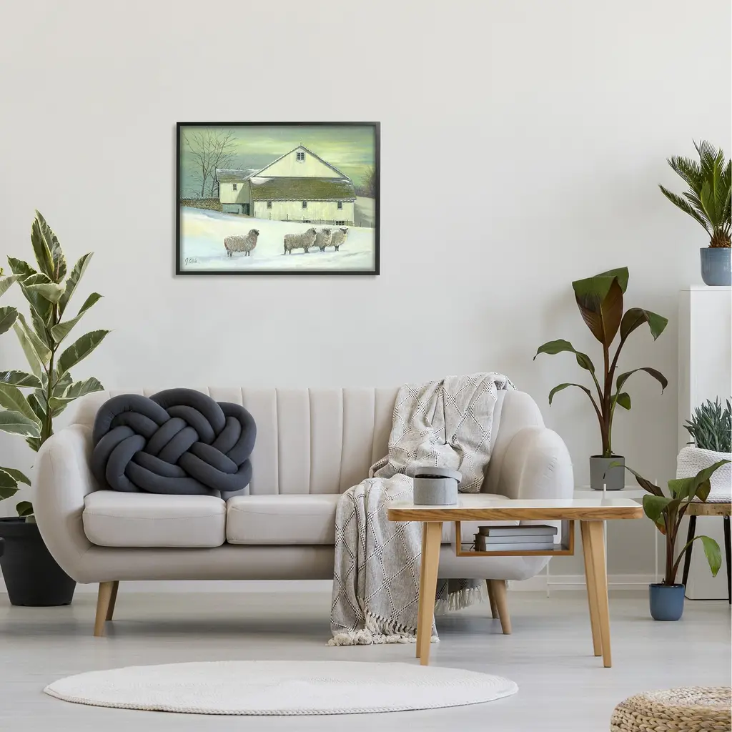 Stupell Sheep In Front Of The Farmhouse Green Toned Painting Framed Art, 11 X 14, Design By Artist Jerry Cable - Multi-Color - 24 X 30