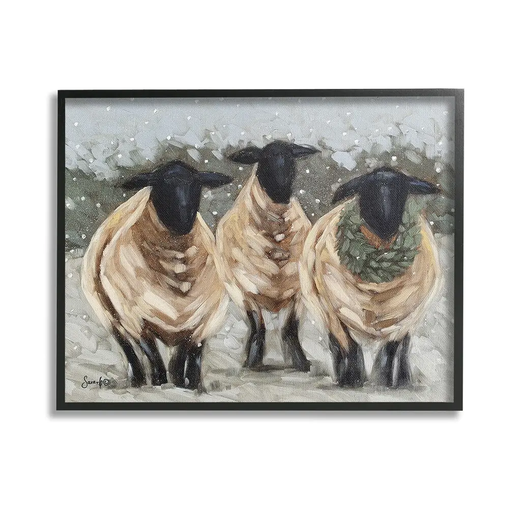 Add dimension to any room with our textured Framed Giclee Artwork. Our framed artwork is securely mounted into a 1.5-inch thick wood grain frame and ready to hang. Frames are available in three alluring styles: black, gray farmhouse and white. In addition, you should check out our oversized options if you want a statement piece. Stupell Wall Art is made in the USA.Features: Dimensions: 14 x 1.5 x 11 FramedFramed Giclee Products are available in the sizes 14"x11", 20"x16" or 30"x24". All Framed Giclee Products have a 1.5" Depth. Wall Art is Ready to Hang with Hardware Free Hanging. No installation required. For Easy Set Up Lean or Layer Artwork on Shelf or Against Wall.Our giclée prints are carefully mounted on a durable MDF backing, and then perfectly finished in a 1.5 inch thick woodgrain frame. Mounted frame colors include black, gray farmhouse and white. Made In USA.Artwork Relates To: Painting, Animal, Mammal, Sheep, Abstract, Modern, Farm, Country, Winter, Snow, WreathDesign by Sara G. Designs