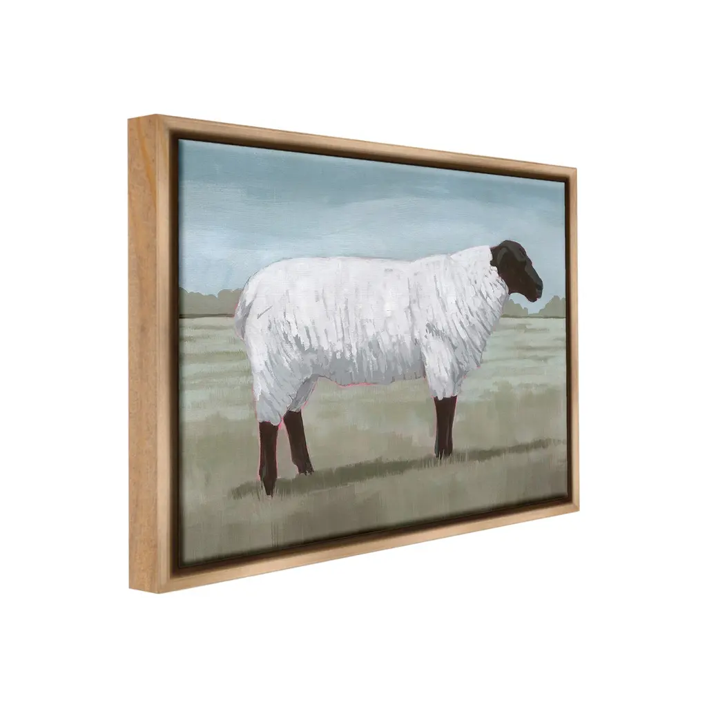 Elevate your home or office to the next level with Stupell Framed Floating Canvas Wall Art. Our premium hand-stretched canvas is mounted securely into a sturdy lightweight frame. The museum-style gap between the wrapped canvas and the box frame gives the illusion of floating artwork. Stupell Wall Art is made in the USA.Features: Dimensions: 21 x 1.7 x 17 Frame, 20 x 1.5 x 16 Canvas ArtFloating Frame Canvas Products are available in sizes 21"x17" and 31"x25". All Floating Frame Canvas Products have a 1.7" Depth.Wall Art is Ready to Hang with Hardware Free Hanging. No Installation required. For Easy Set Up Lean or Layer Artwork on Shelf or Against Wall. Artwork is Permently Fixed into the Frame.Our elevated 1.7" Thick Floating Frame is the perfect complement to our canvas style Wall Art. We use only the highest quality inks in house with industry leading printing solutions. Canvas is hand stretched over a durable wood foundation and then mounted securly into a Modern Box Frame. Made in the USA.Artwork Relates To: Animal, Mammal, Sheep, Landscape, Farm, Country, PaintingDesign by Grace Popp