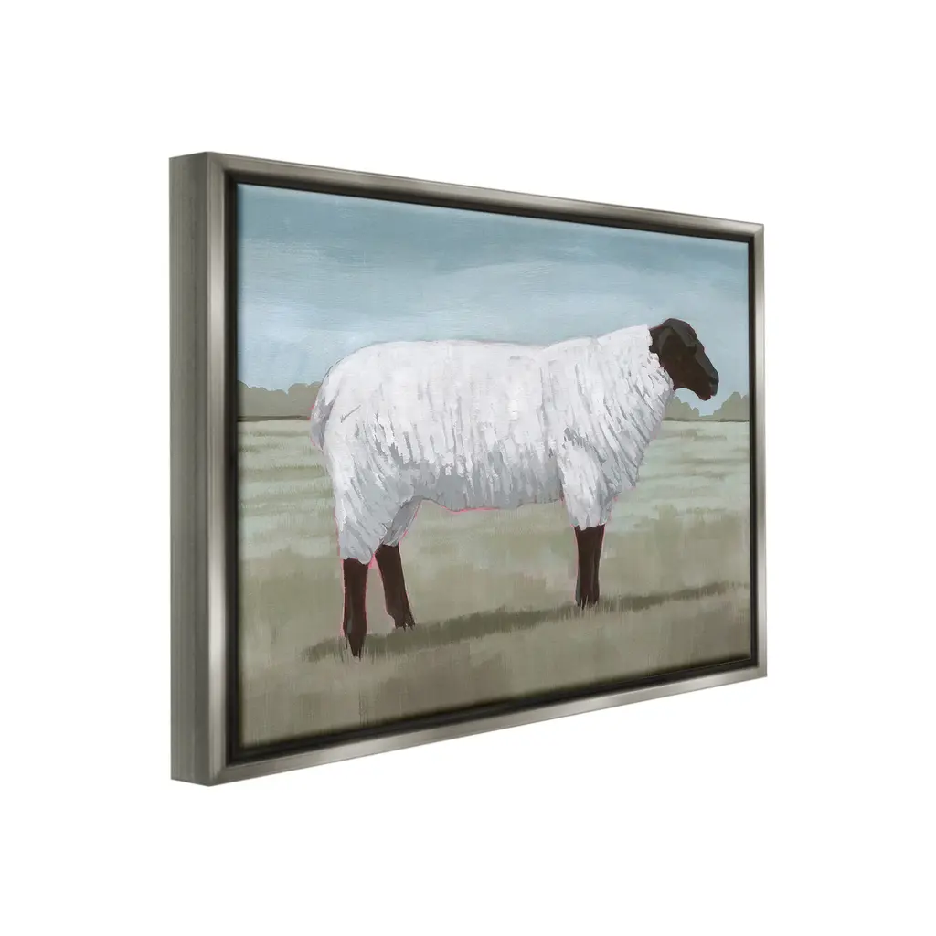 Elevate your home or office to the next level with Stupell Framed Floating Canvas Wall Art. Our premium hand-stretched canvas is mounted securely into a sturdy lightweight frame. The museum-style gap between the wrapped canvas and the box frame gives the illusion of floating artwork. Stupell Wall Art is made in the USA.Features: Dimensions: 21 x 1.7 x 17 Frame, 20 x 1.5 x 16 Canvas ArtFloating Frame Canvas Products are available in sizes 21"x17" and 31"x25". All Floating Frame Canvas Products have a 1.7" Depth.Wall Art is Ready to Hang with Hardware Free Hanging. No Installation required. For Easy Set Up Lean or Layer Artwork on Shelf or Against Wall. Artwork is Permently Fixed into the Frame.Our elevated 1.7" Thick Floating Frame is the perfect complement to our canvas style Wall Art. We use only the highest quality inks in house with industry leading printing solutions. Canvas is hand stretched over a durable wood foundation and then mounted securly into a Modern Box Frame. Made in the USA.Artwork Relates To: Animal, Mammal, Sheep, Landscape, Farm, Country, PaintingDesign by Grace Popp