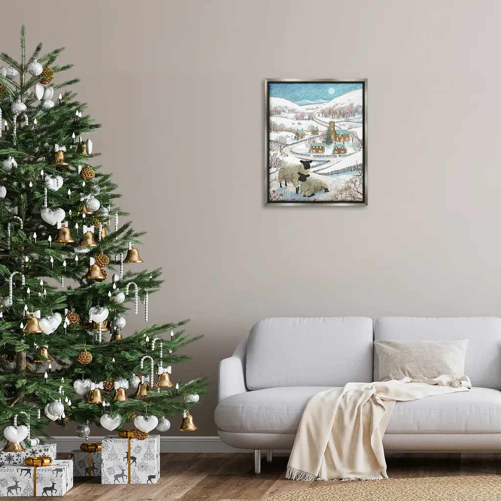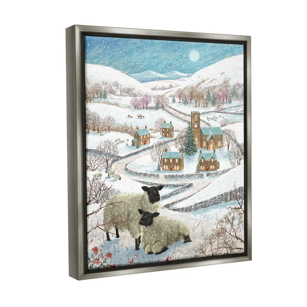 Elevate your home or office to the next level with Stupell Framed Floating Canvas Wall Art. Our premium hand-stretched canvas is mounted securely into a sturdy lightweight frame. The museum-style gap between the wrapped canvas and the box frame gives the illusion of floating artwork. Stupell Wall Art is made in the USA.Features: Dimensions: 17 x 1.7 x 21 Frame, 16 x 1.5 x 20 Canvas ArtFloating Frame Canvas Products are available in sizes 17"x21" and 25"x31". All Floating Frame Canvas Products have a 1.7" Depth.Wall Art is Ready to Hang with Hardware Free Hanging. No Installation required. For Easy Set Up Lean or Layer Artwork on Shelf or Against Wall. Artwork is Permently Fixed into the Frame.Our elevated 1.7" Thick Floating Frame is the perfect complement to our canvas style Wall Art. We use only the highest quality inks in house with industry leading printing solutions. Canvas is hand stretched over a durable wood foundation and then mounted securly into a Modern Box Frame. Made in the USA.Artwork Relates To: Animal, Mammal, Sheep, Winter, Snow, Town, House, Farmhouse, BotanicalDesign by Pip Wilson