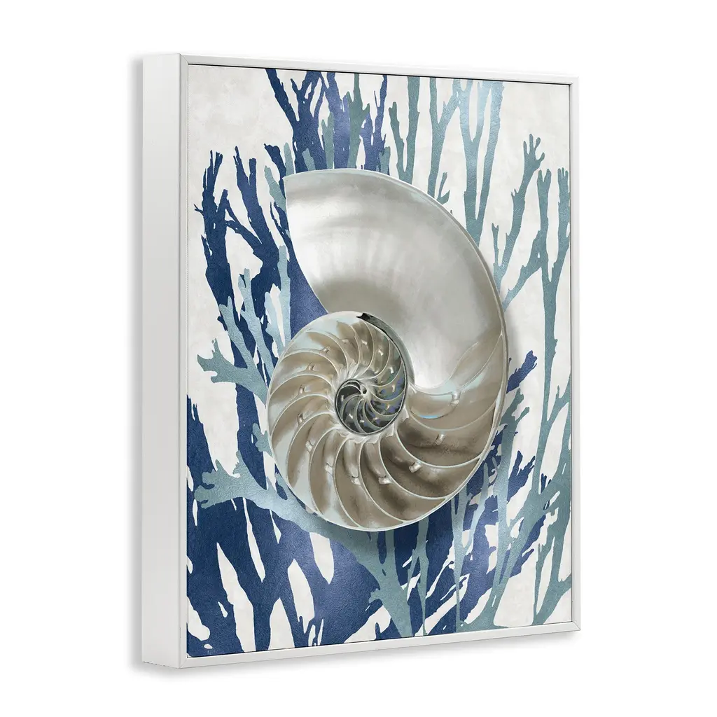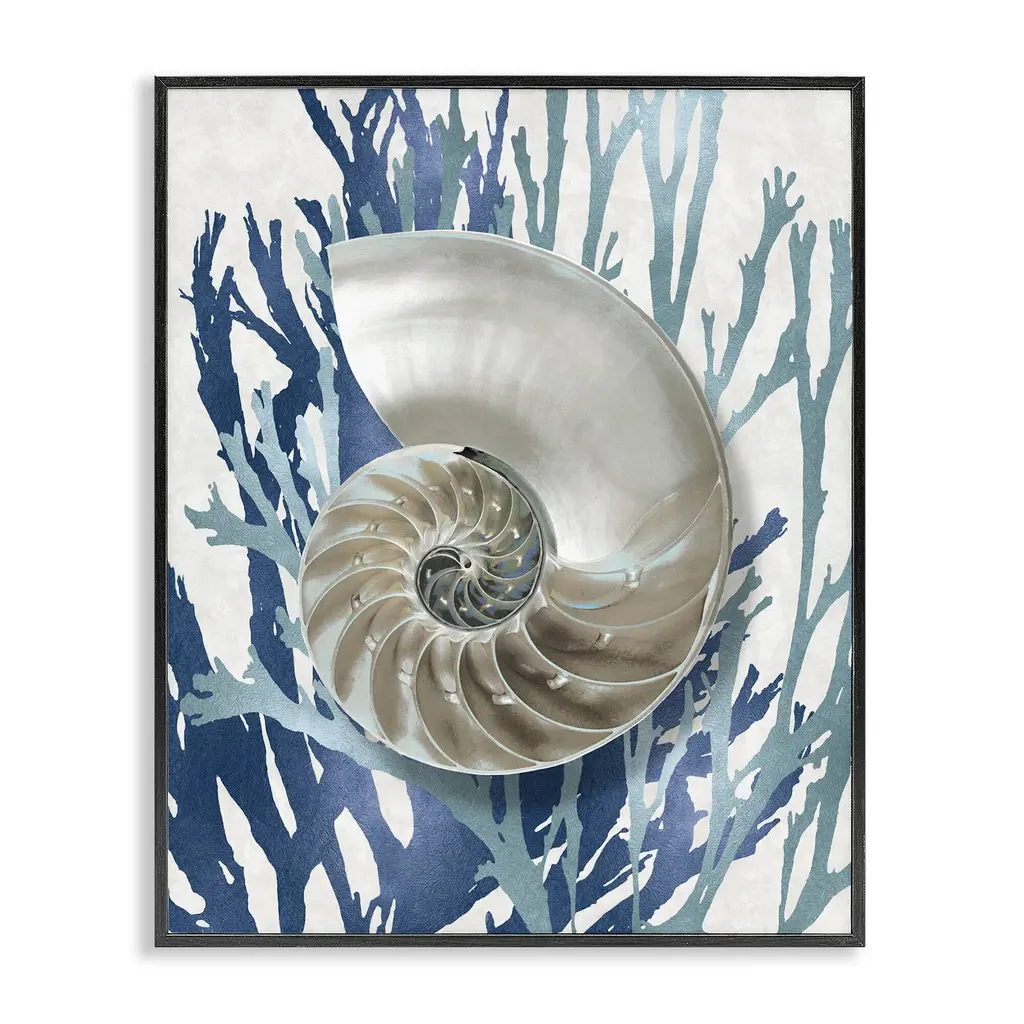 Stupell Shell Coral Beach Blue Design Framed Giclee Texturized Art By Caroline Kelly - 11 X 14 - White