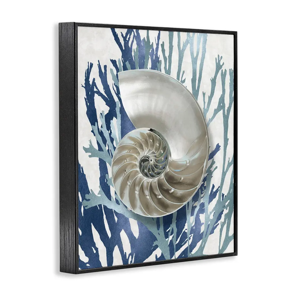 Stupell Shell Coral Beach Blue Design Framed Giclee Texturized Art By Caroline Kelly - 24 X 30 - Black