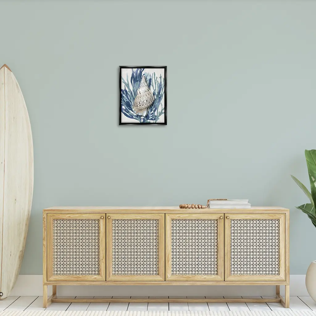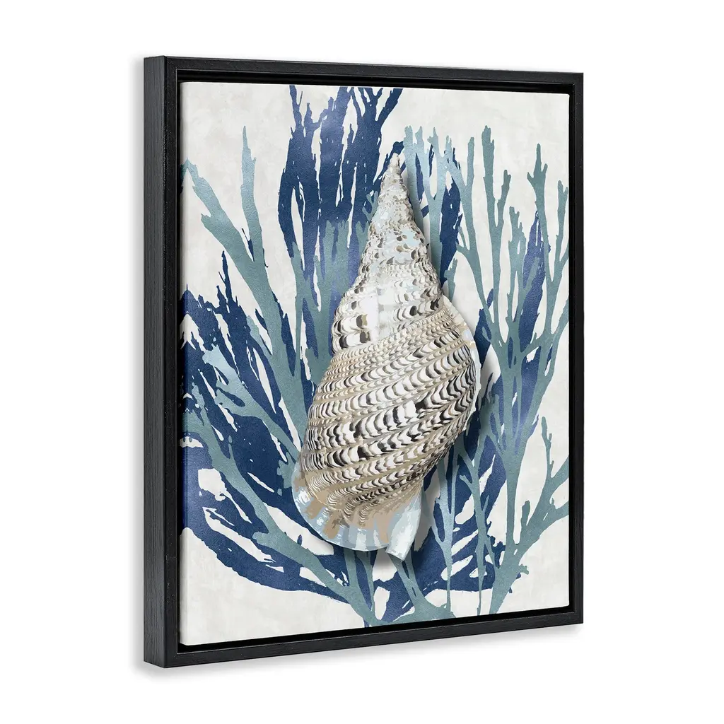 Elevate your home or office to the next level with Stupell Framed Floating Canvas Wall Art. Our premium hand-stretched canvas is mounted securely into a sturdy lightweight frame. The museum-style gap between the wrapped canvas and the box frame gives the illusion of floating artwork. Stupell Wall Art is made in the USA.Features: Dimensions: 17 x 1.7 x 21 Frame, 16 x 1.5 x 20 Canvas ArtFloating Frame Canvas Products are available in sizes 17"x21" and 25"x31". All Floating Frame Canvas Products have a 1.7" Depth.Wall Art is Ready to Hang with Hardware Free Hanging. No Installation required. For Easy Set Up Lean or Layer Artwork on Shelf or Against Wall. Artwork is Permently Fixed into the Frame.Our elevated 1.7" Thick Floating Frame is the perfect complement to our canvas style Wall Art. We use only the highest quality inks in house with industry leading printing solutions. Canvas is hand stretched over a durable wood foundation and then mounted securly into a Modern Box Frame. Made in the USA.Artwork Relates To: Seashell, Rustic, Sea Life, Nautical, Maritime, Conch, CoralDesign by Caroline Kelly