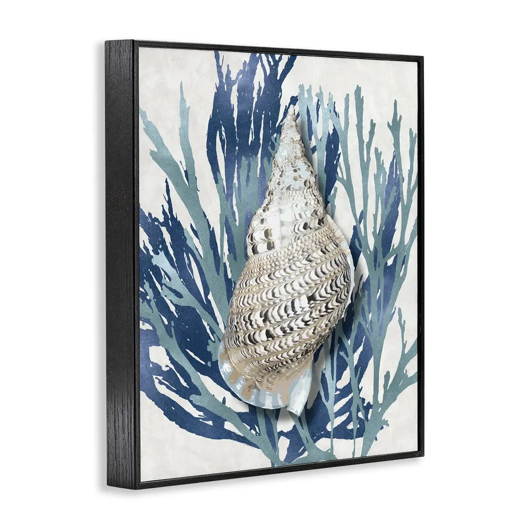 Stupell Shell Coral Blue Beach Design Framed Wall Art - 24 X 30 - Black