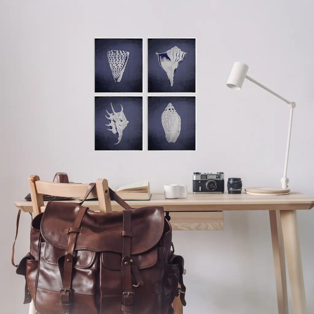 Fill any space with Stupell Wall Art Sets. Our wall plaques start as high-quality lithograph prints mounted on durable 0.5-inch thick MDF wood. Each piece is hand finished and comes with a fresh layer of white foil on the sides to give it a crisp, clean look. Plaques arrive ready to hang without installation and come with removable plastic corners to keep them from damage in transit. Stupell Wall Art is made in the USA.Features: Dimensions: 4 Piece Set, Each Panel is 11 x 0.5 x 14 InchesWall Art is Ready to Hang with Hardware Free Hanging. No installation required. For Easy Set Up Lean or Layer Artwork on Shelf or Against Wall.All of our wall plaques start off as high quality lithograph prints that are then mounted on durable 0.5 inch thick MDF wood. Each piece is hand finished and comes with a fresh layer of foil on the sides to give it a crisp clean look. Made In USA.Artwork Relates To: Nautical, Aquatic, Sea Life, Beach, SeashellDesign by Graffi*tee Studios